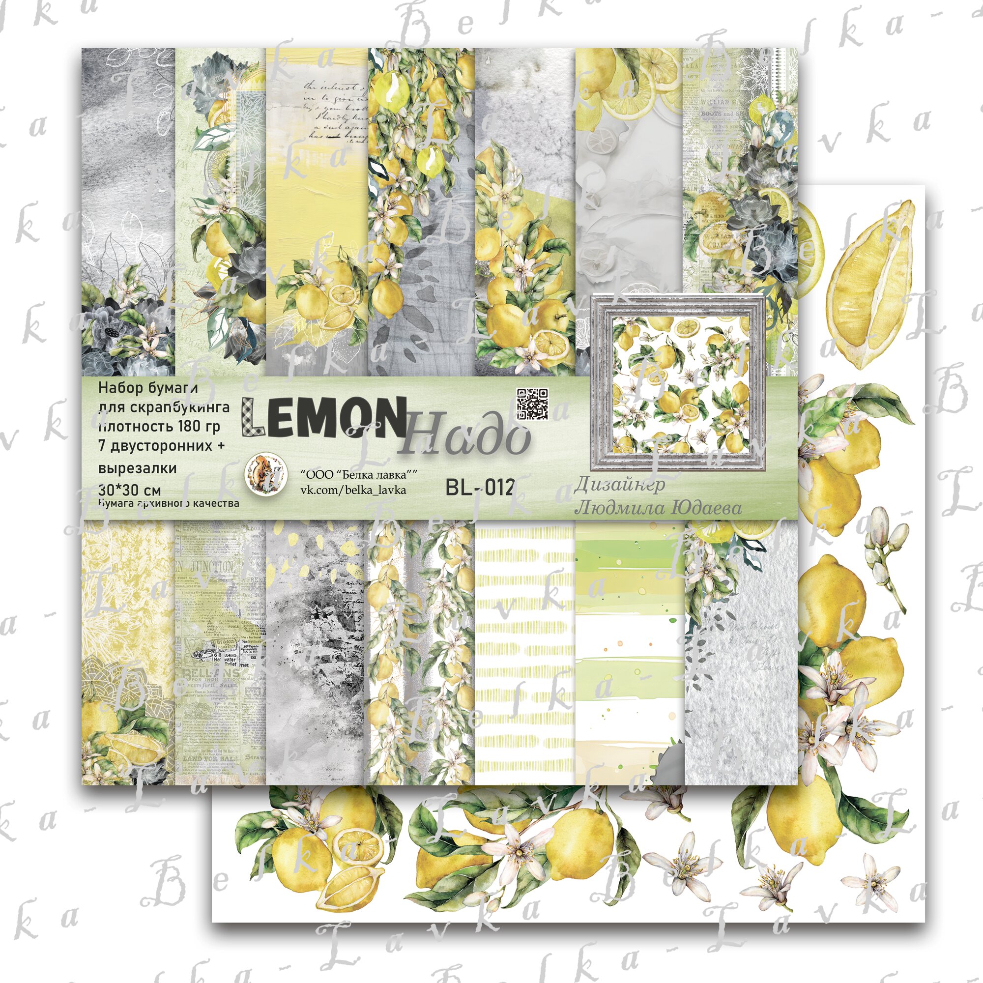 Набор скрап-бумаги Belka Lavka "LemonНадо", абстракция, 190g/m2, 30х31 см информация: