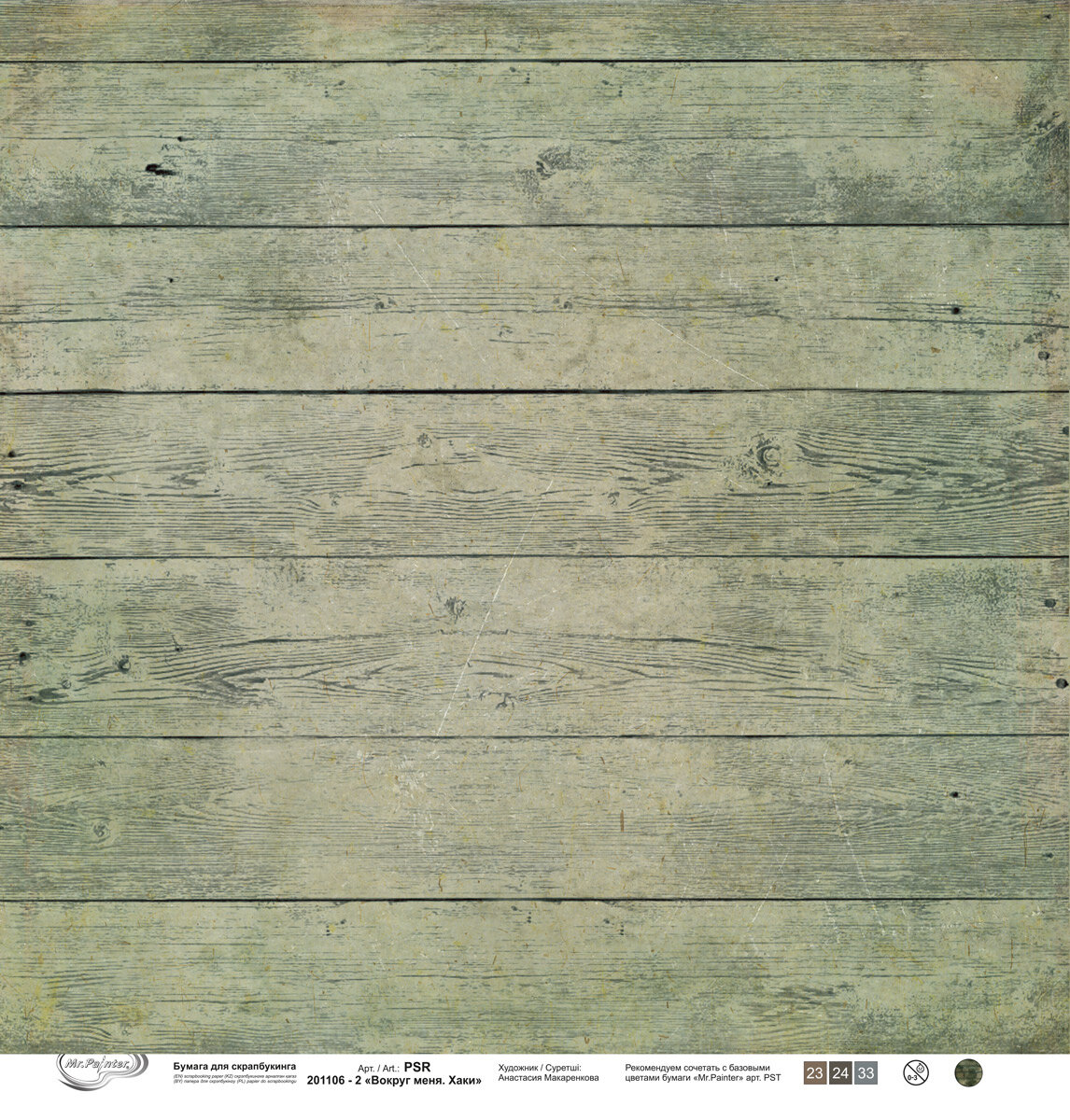 Бумага для скрапбукинга "Mr.Painter" PSR 201106 "Вокруг меня. Хаки" 190 г/кв. м 30.5 x 30.5 см 2 информация: