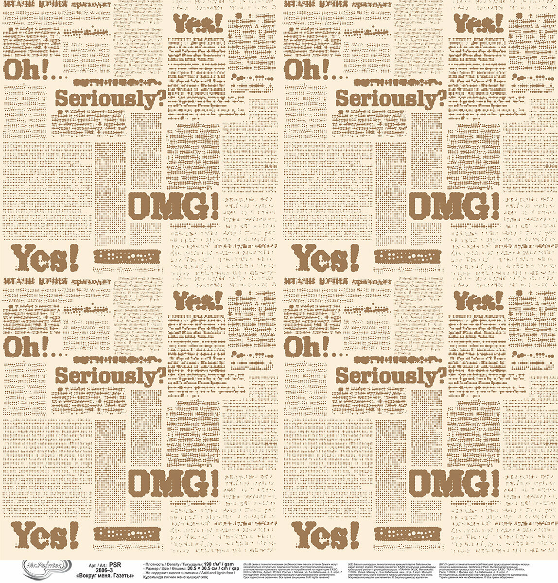 Бумага для скрапбукинга "Mr.Painter" PSR 2606 "Вокруг меня. Газеты" 190 г/кв. м 30.5 x 30.5 см 3 информация: