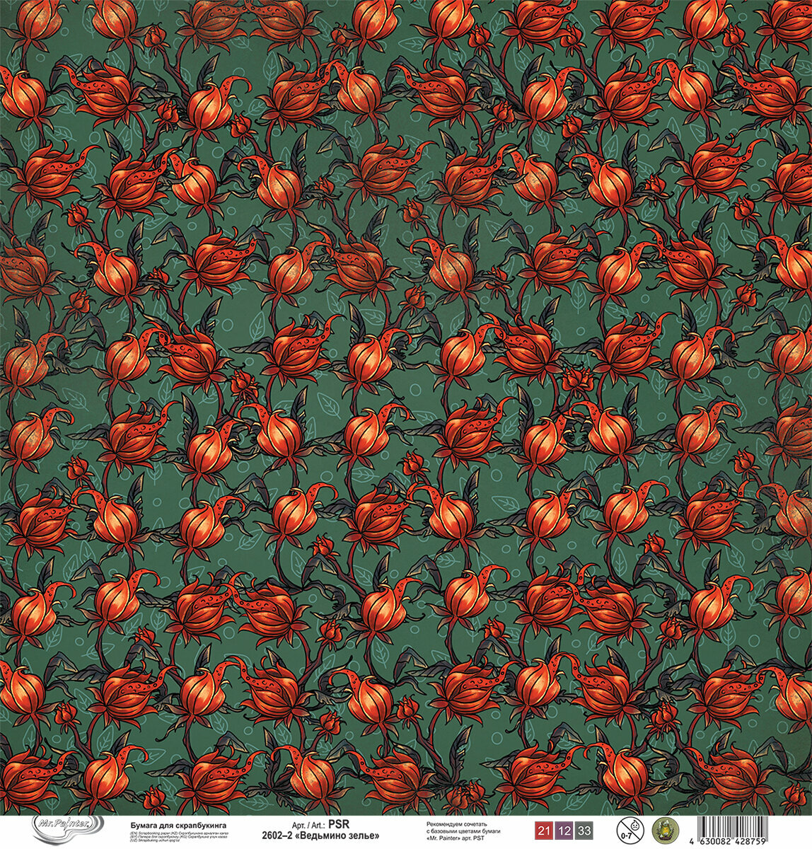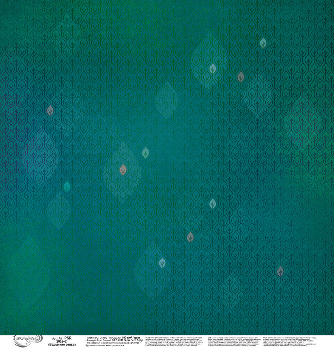 Бумага для скрапбукинга "Mr.Painter" PSR 2602 "Ведьмино зелье" 190 г/кв. м 30.5 x 30.5 см 2 информация: