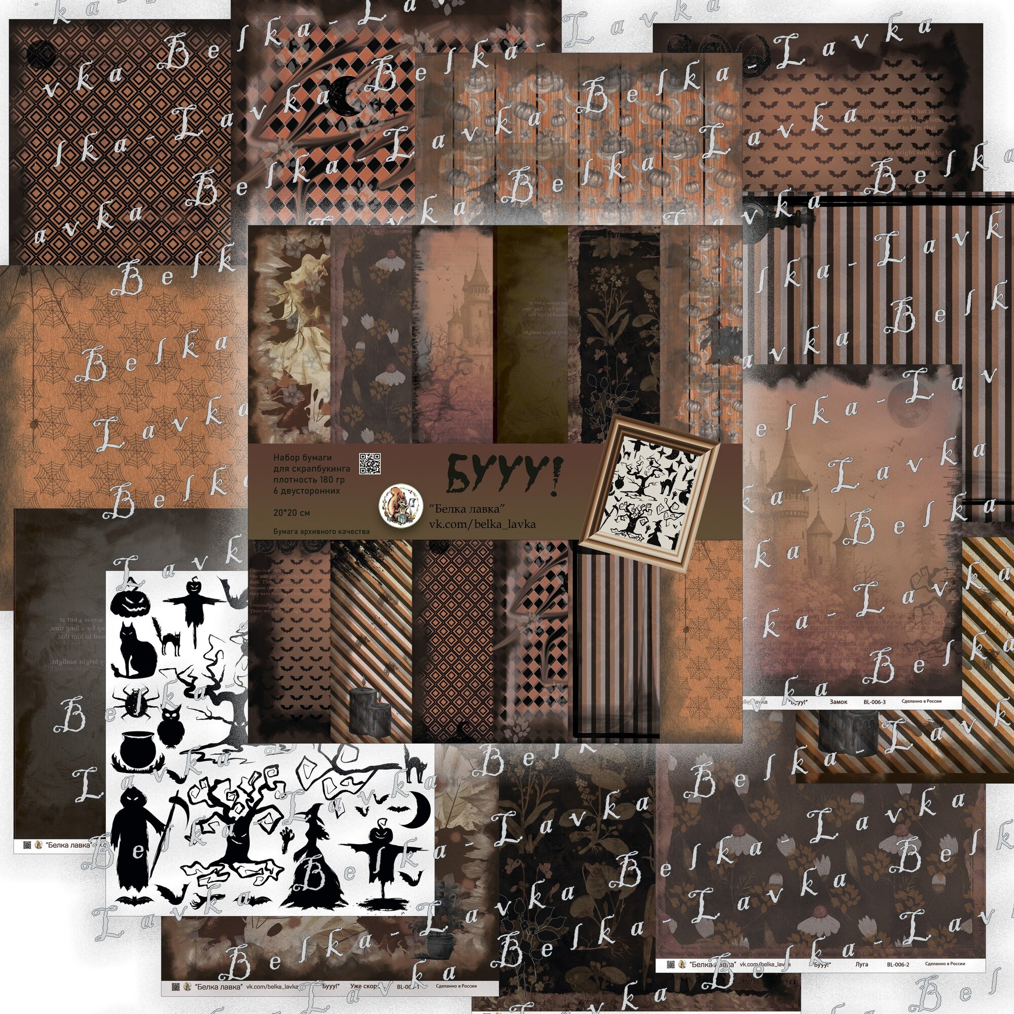 Набор скрап-бумаги Belka Lavka "Бууу!", 12+1 дизайн, 20x21 см, двусторонняя информация:
