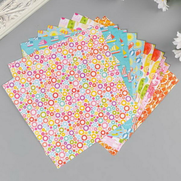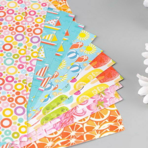 10 цен на Цветная WASHI-бумага для декора "лето",15х15см, самоклеящаяся набор 12 листов, 6 дизайнов
