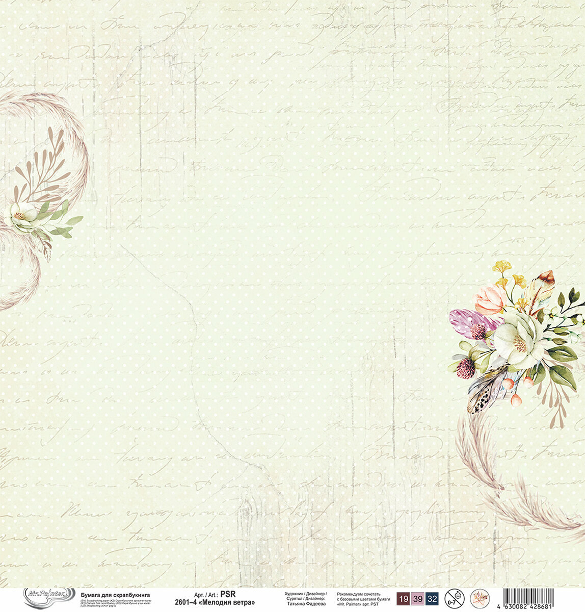 Бумага для скрапбукинга "Mr.Painter" PSR 2601 "Мелодия ветра" 190 г/кв. м 30.5 x 30.5 см 4 информация: