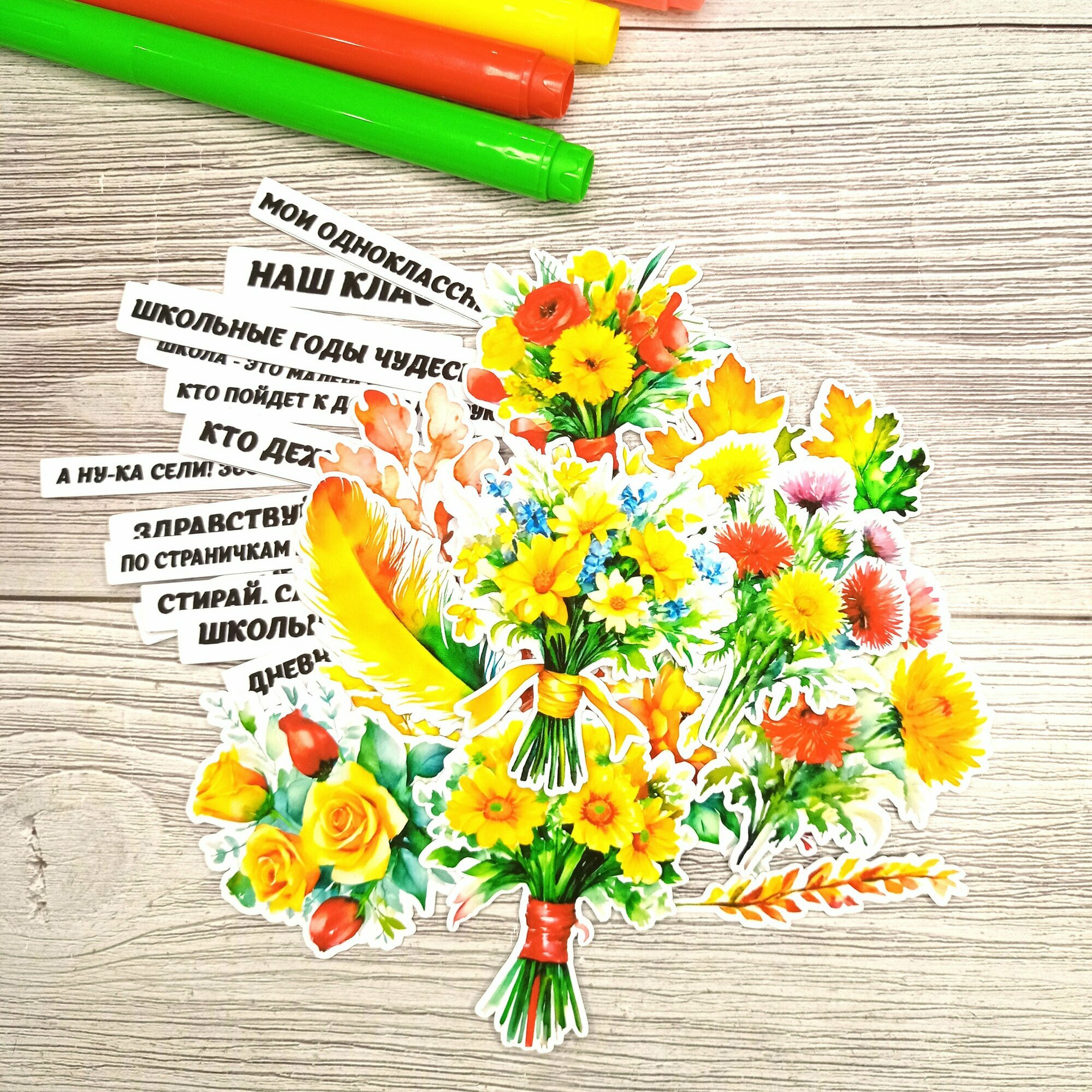 10 цен на Высечки для скрапбукинга "Школьные надписи и Цветы" набор 29 шт для дизайна.