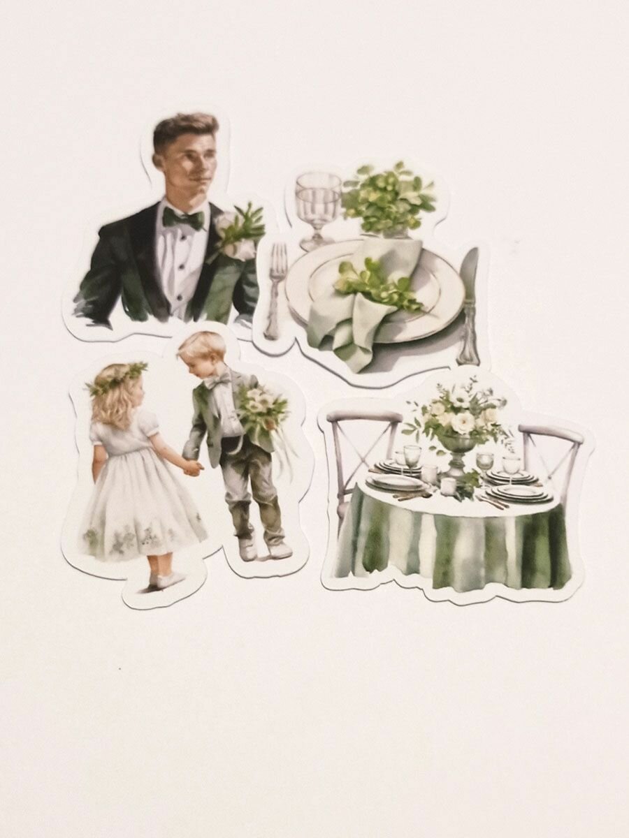 Высечки для скрапбукинга "Свадьба в Зеленых Тонах" набор 31 шт для дизайна информация: