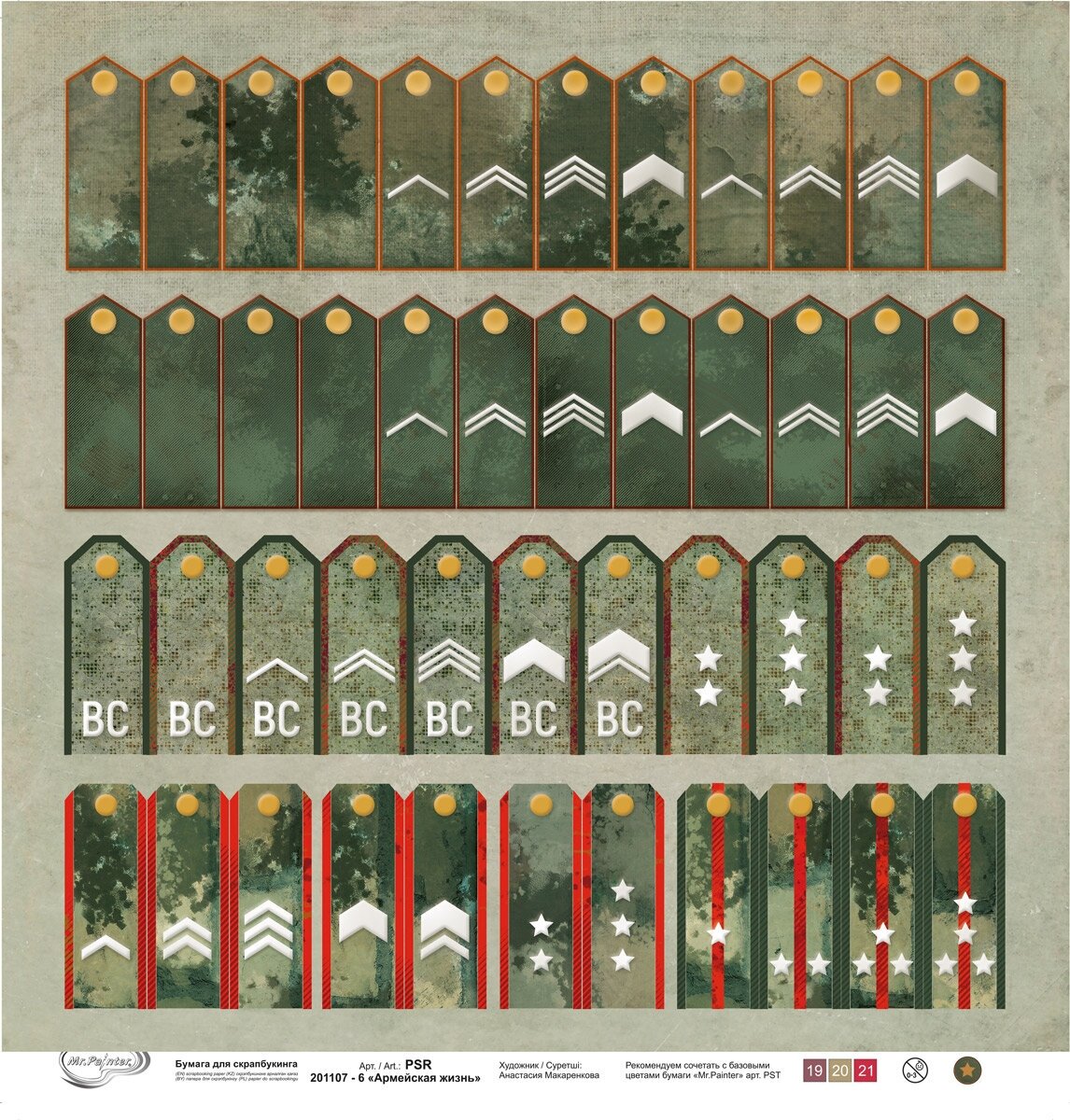 Бумага для скрапбукинга "Mr.Painter" PSR 201107 "Армейская жизнь" 190 г/кв. м 30.5 x 30.5 см 6 информация:
