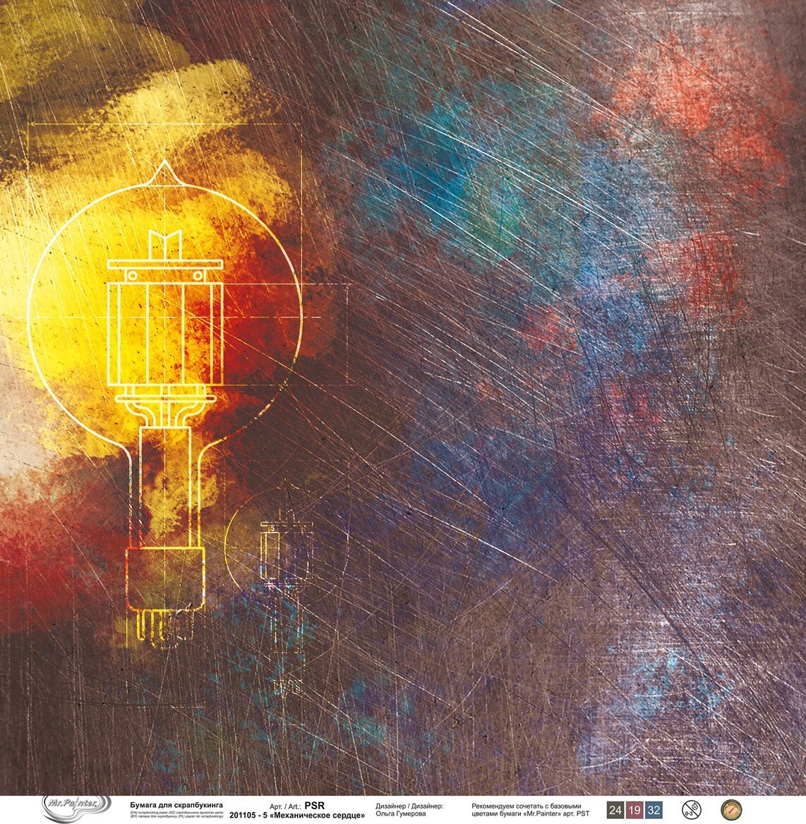 Бумага для скрапбукинга "Mr.Painter" PSR 201105 "Механическое сердце" 190 г/кв. м 30.5 x 30.5 см 5 информация: