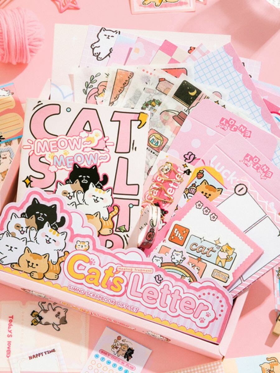 10 цен на Подарочный набор "Котики", для скрапбукинга, с блокнотом, розовый