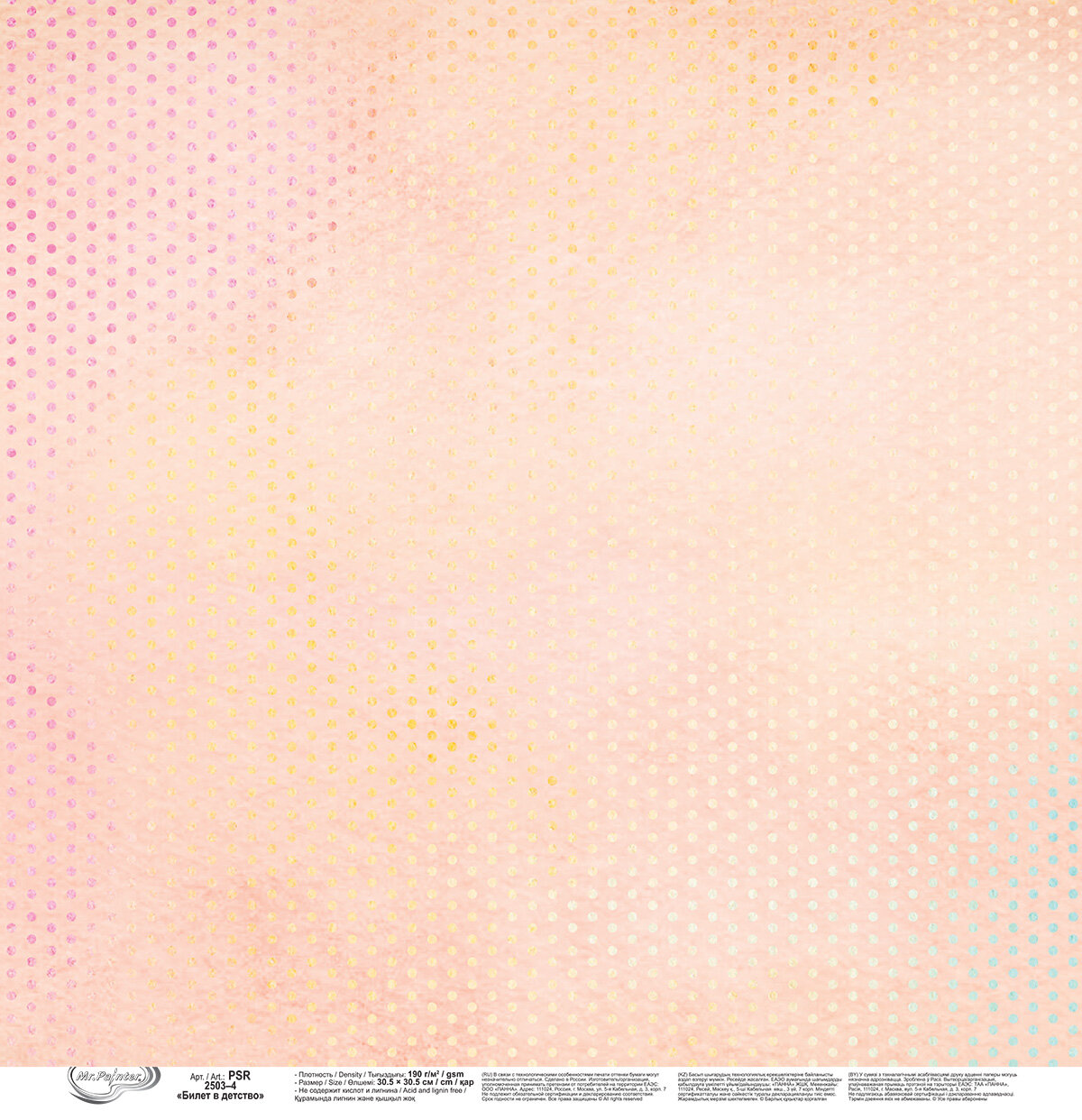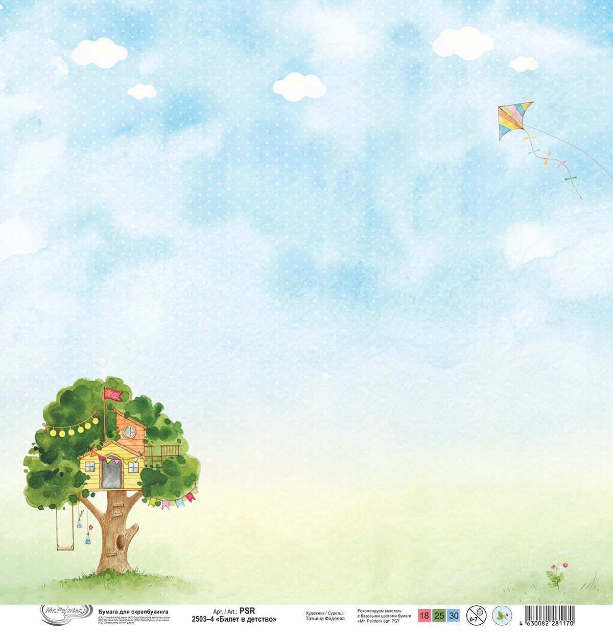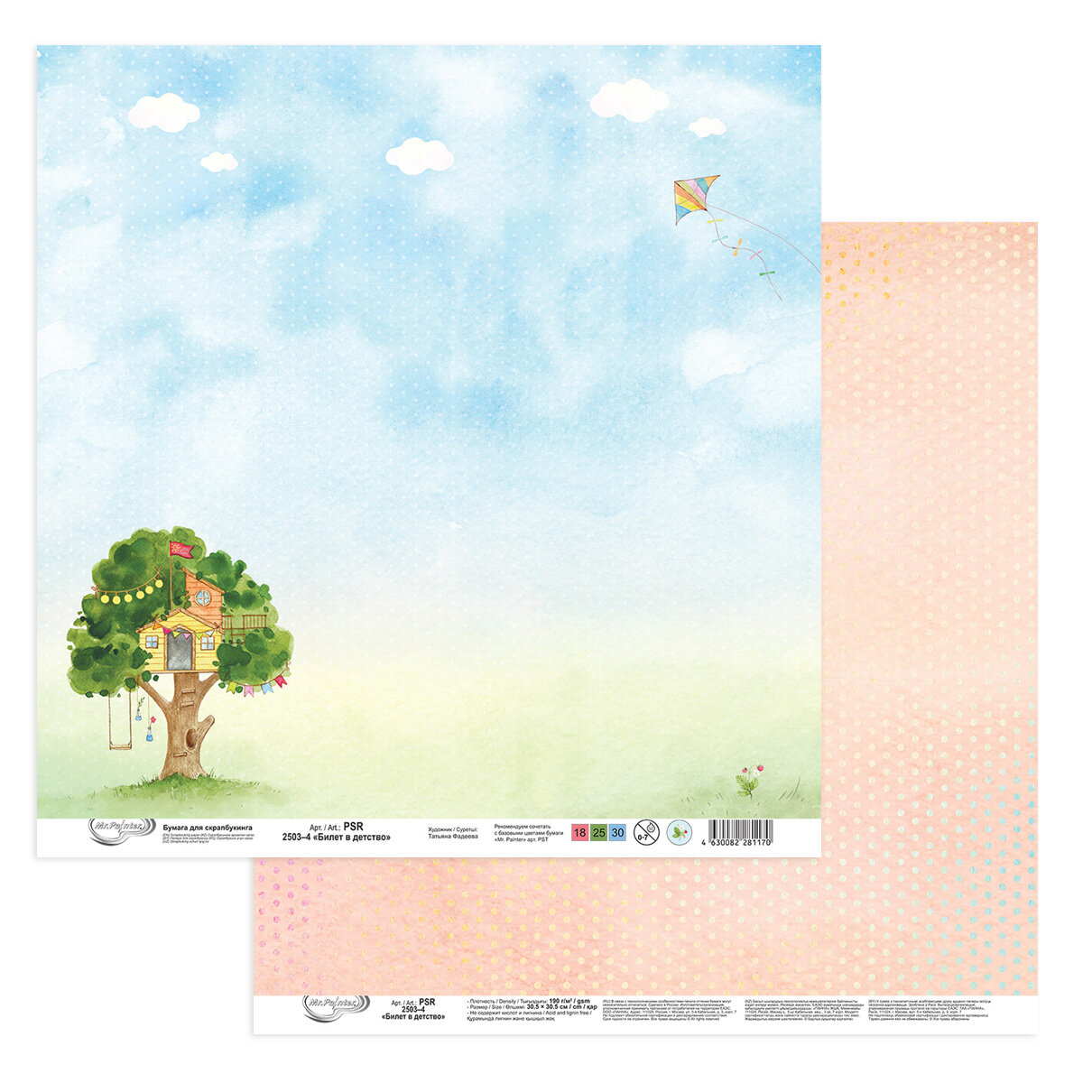 Бумага для скрапбукинга "Mr.Painter" PSR 2503 "Билет в детство" 190 г/кв. м 30.5 x 30.5 см 4 информация: