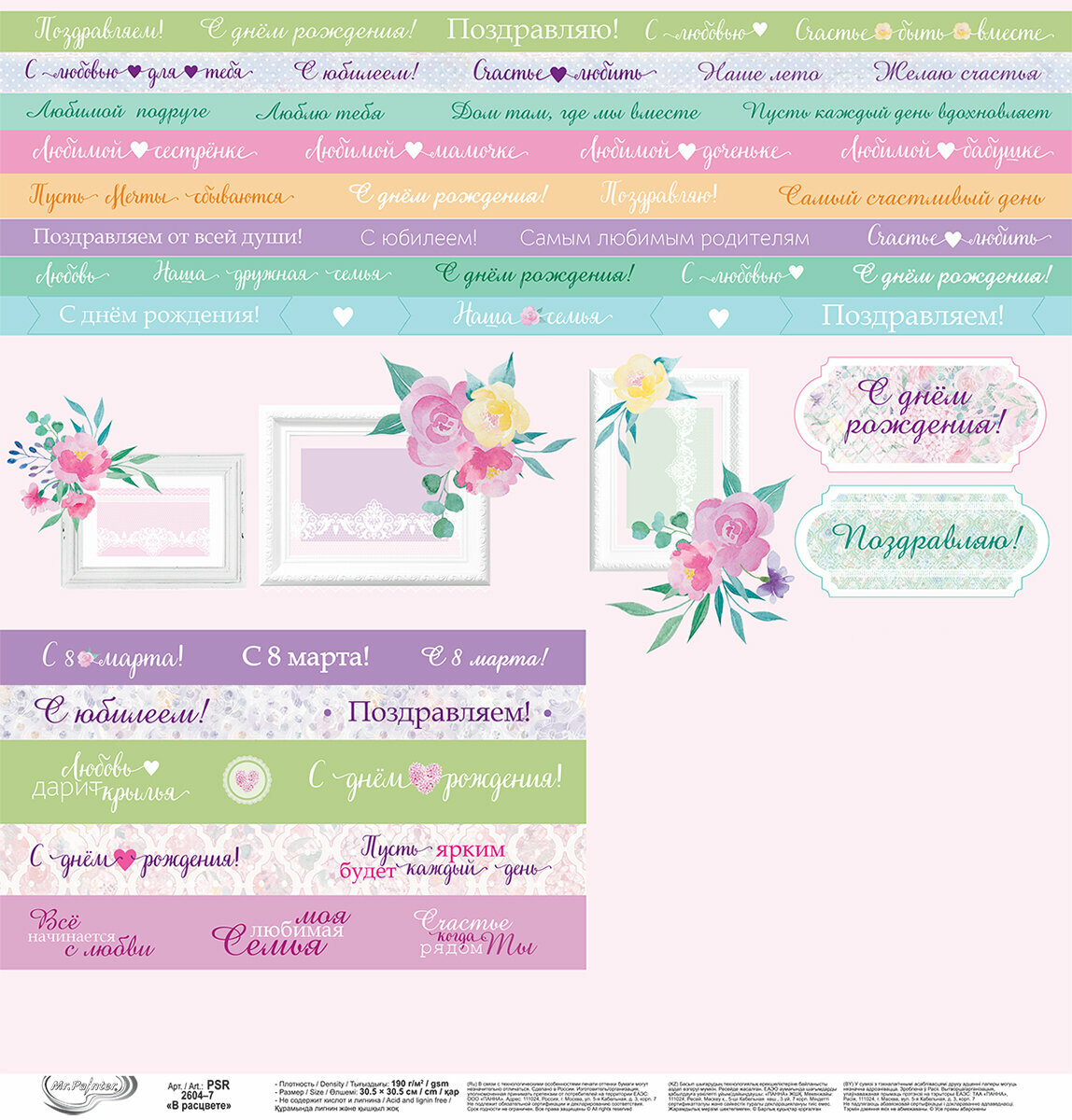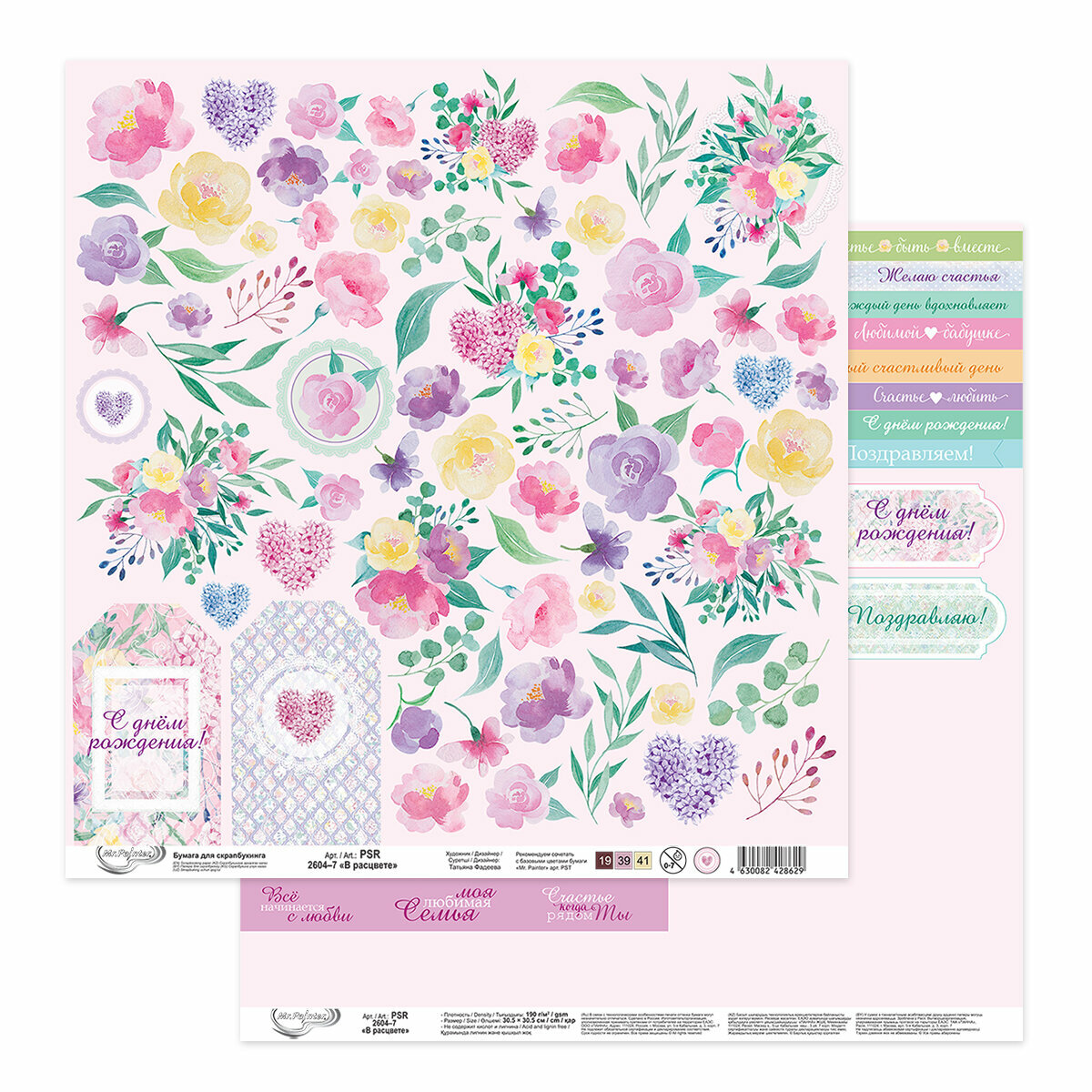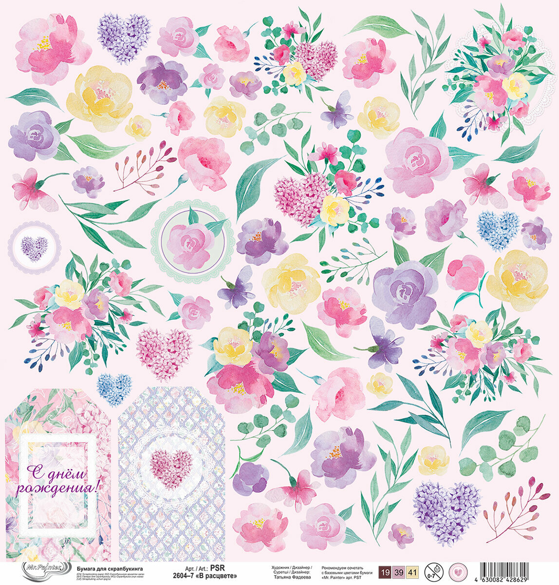 Бумага для скрапбукинга "Mr.Painter" PSR 2604 "В расцвете" 190 г/кв. м 30.5 x 30.5 см 7 лист для вырезания информация: