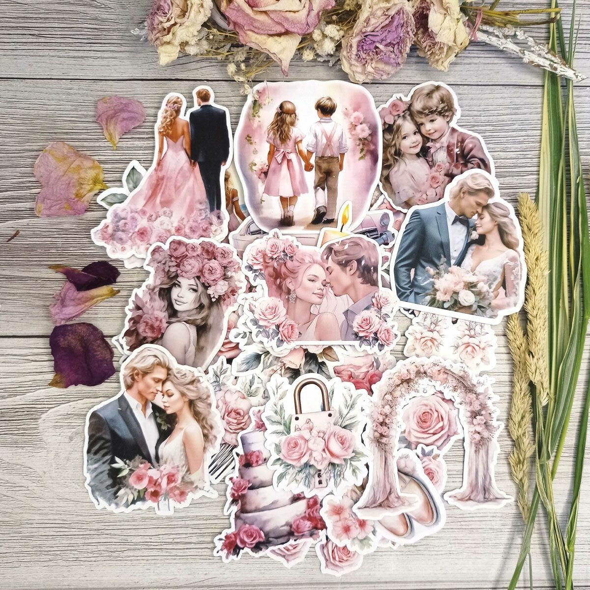 Высечки для скрапбукинга "Свадьба в Розовых Тонах" большой набор 42 шт для дизайна информация: