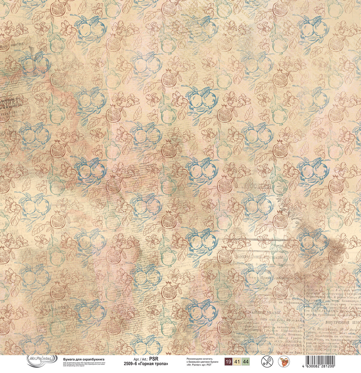 Бумага для скрапбукинга "Mr.Painter" PSR 2509 "Горная тропа " 190 г/кв. м 30.5 x 30.5 см 6 информация: