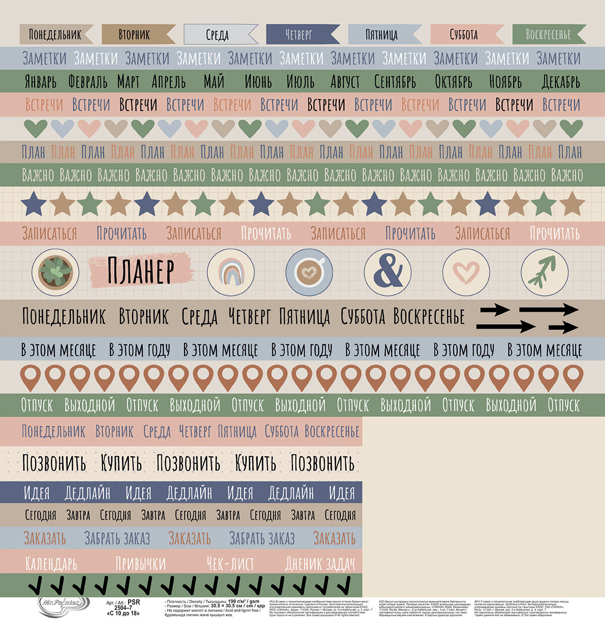 Бумага для скрапбукинга "Mr.Painter" PSR 2504 "с 10 до 18" 190 г/кв. м 30.5 x 30.5 см 7 лист для вырезания информация: