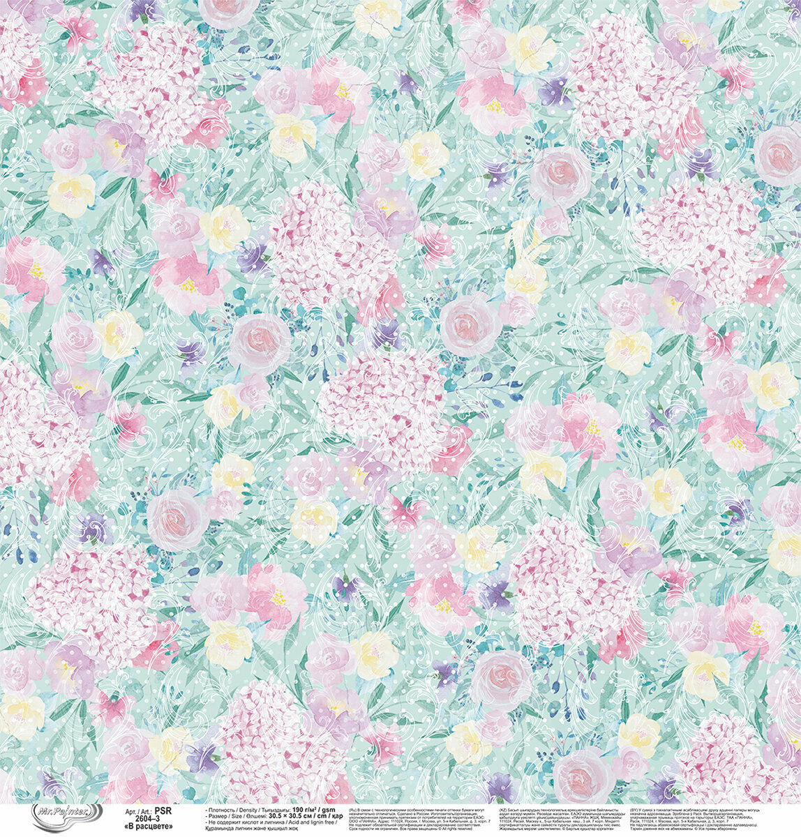 Бумага для скрапбукинга "Mr.Painter" PSR 2604 "В расцвете" 190 г/кв. м 30.5 x 30.5 см 3 информация: