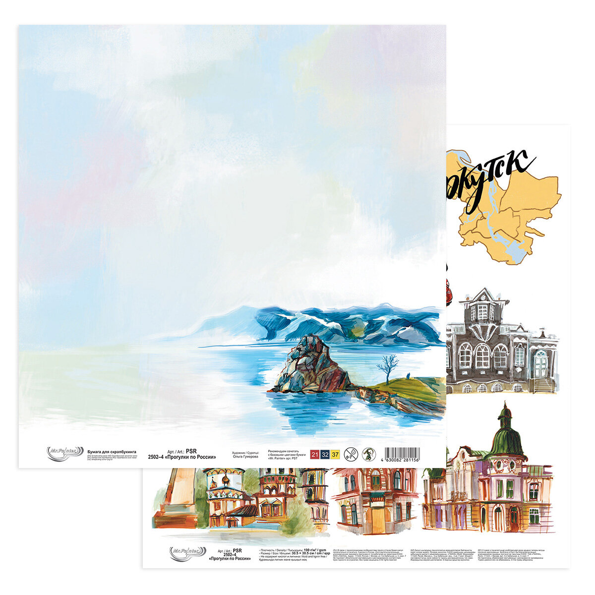 Бумага для скрапбукинга "Mr.Painter" PSR 2502 "Прогулки по России" 190 г/кв. м 30.5 x 30.5 см 4 Иркутск информация: