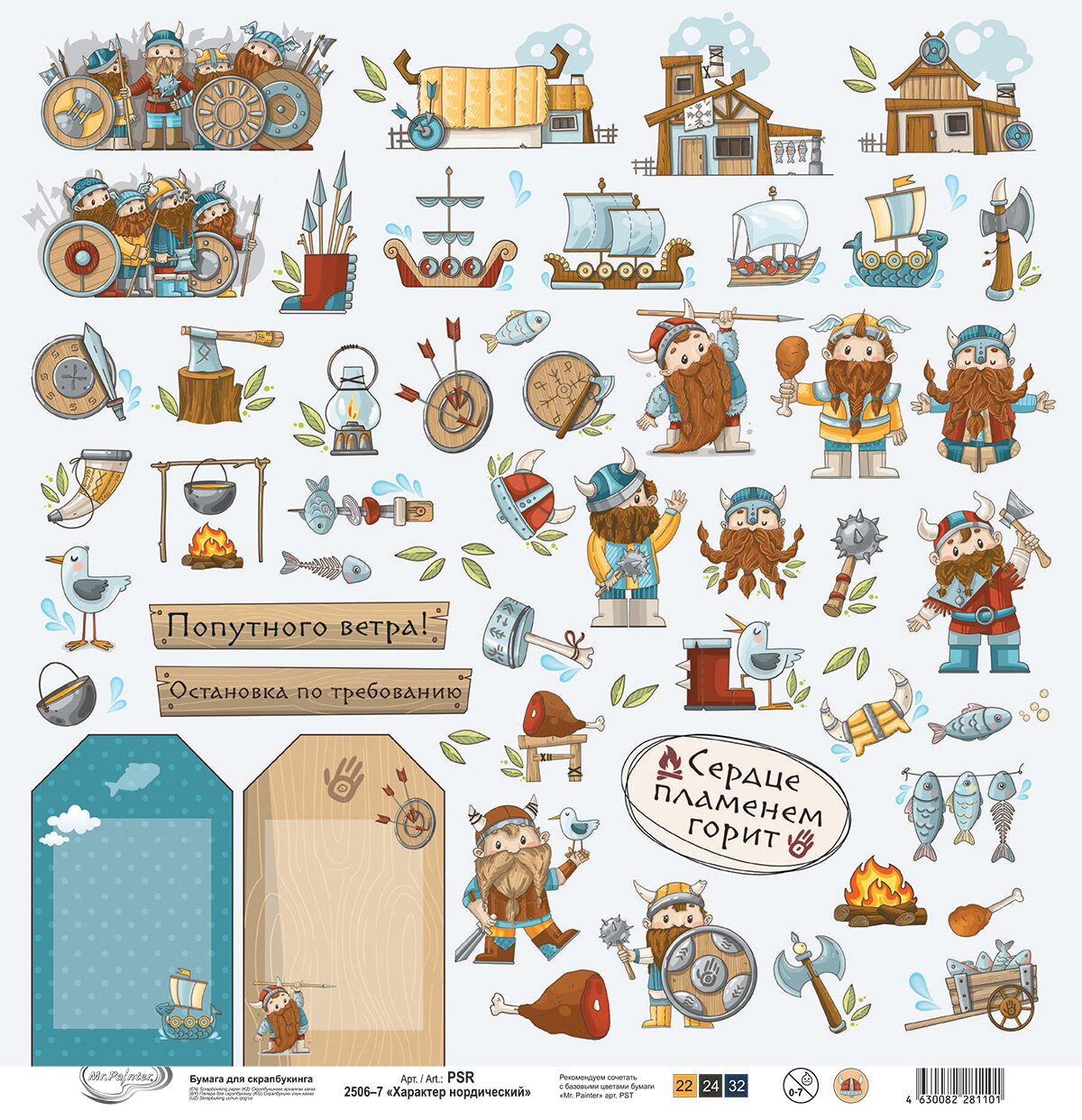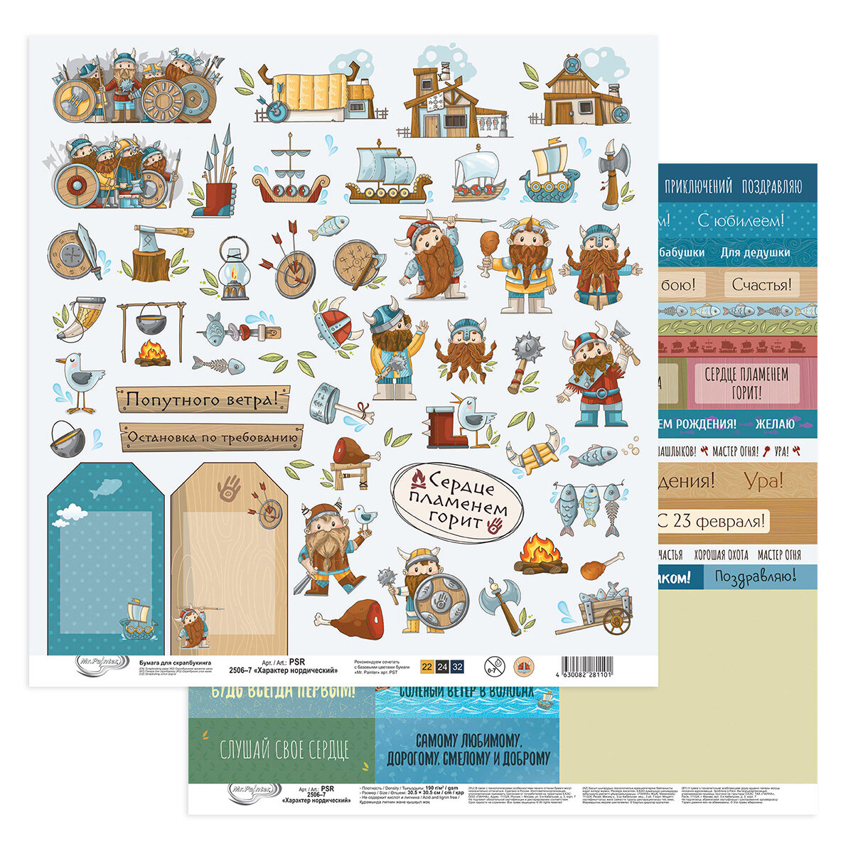 Бумага для скрапбукинга "Mr.Painter" PSR 2506 "Характер нордический " 190 г/кв. м 30.5 x 30.5 см 7 лист для вырезания информация: