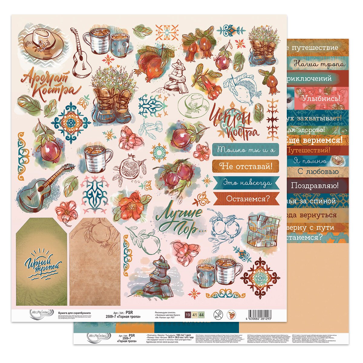 Бумага для скрапбукинга "Mr.Painter" PSR 2509 "Горная тропа " 190 г/кв. м 30.5 x 30.5 см 7 лист для вырезания информация: