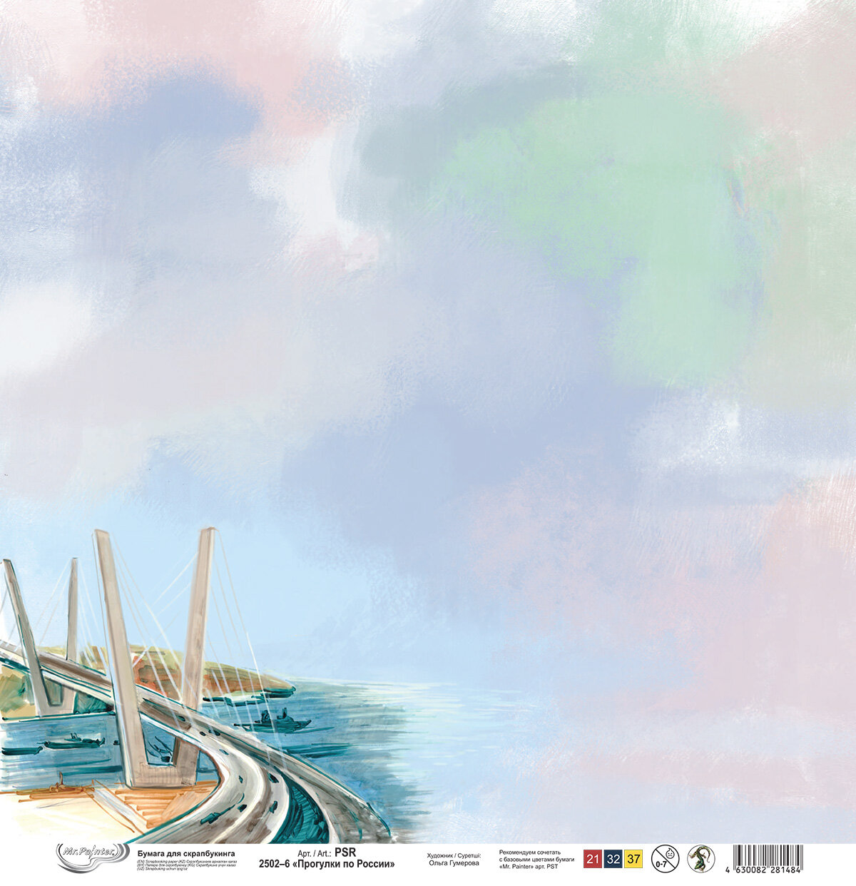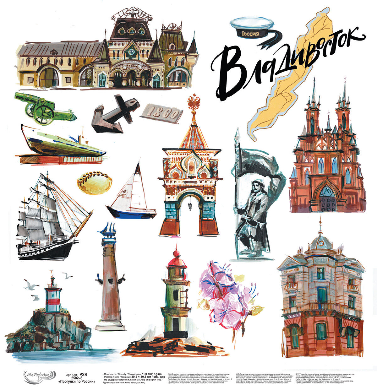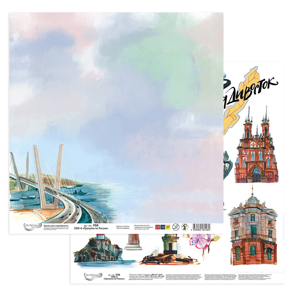 Бумага для скрапбукинга "Mr.Painter" PSR 2502 "Прогулки по России" 190 г/кв. м 30.5 x 30.5 см 6 Владивосток информация: