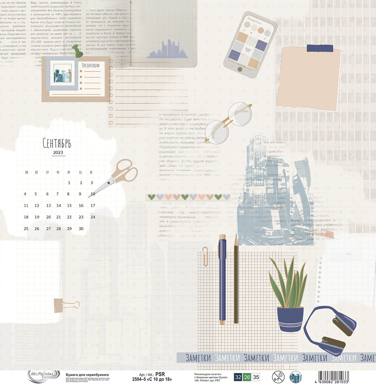 Бумага для скрапбукинга "Mr.Painter" PSR 2504 "с 10 до 18" 190 г/кв. м 30.5 x 30.5 см 5 информация: