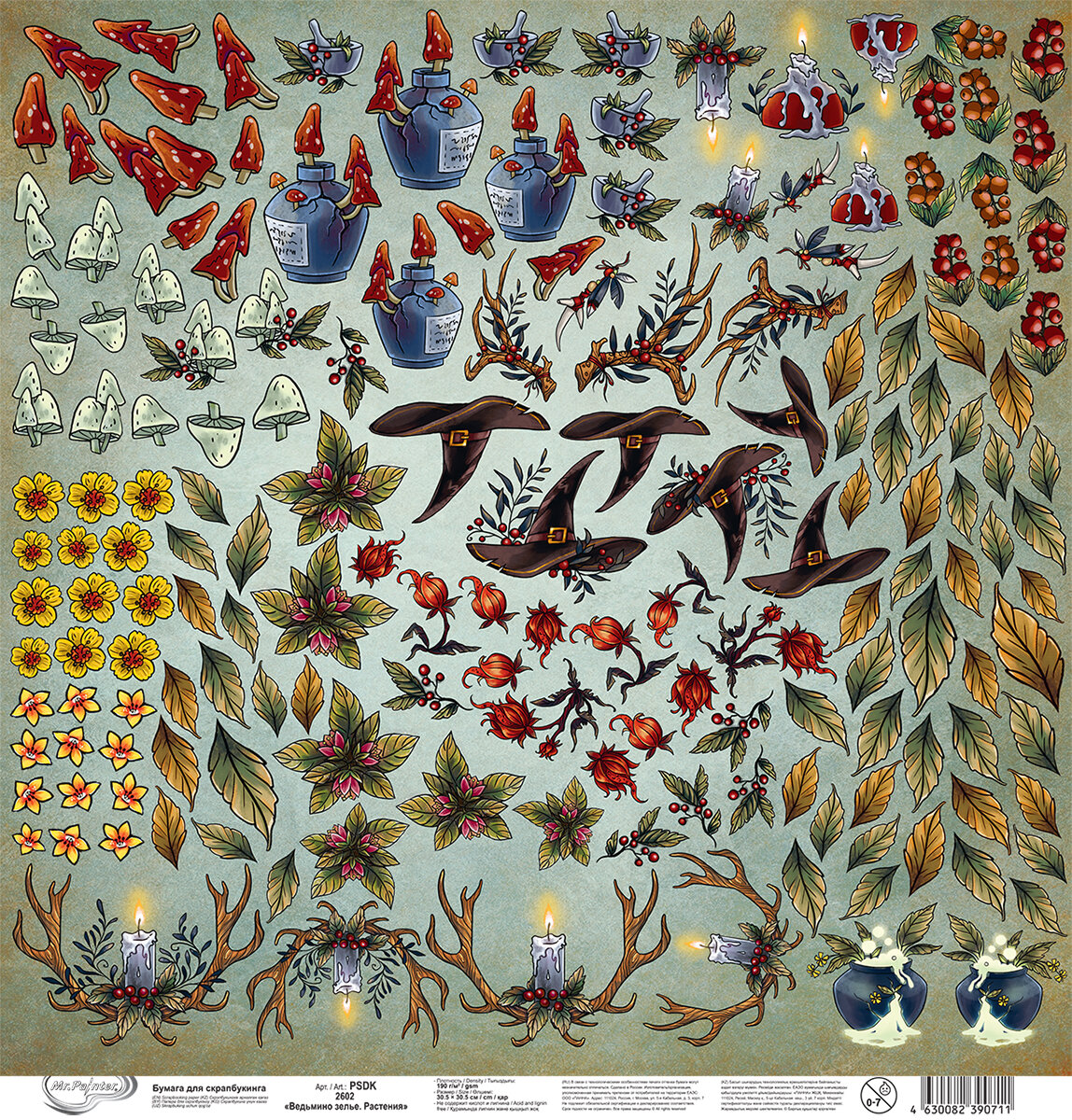 Бумага для скрапбукинга "Mr.Painter" PSDK 190 г/кв. м 30.5 x 30.5 см 2602 "Ведьмино зелье. Растения" информация: