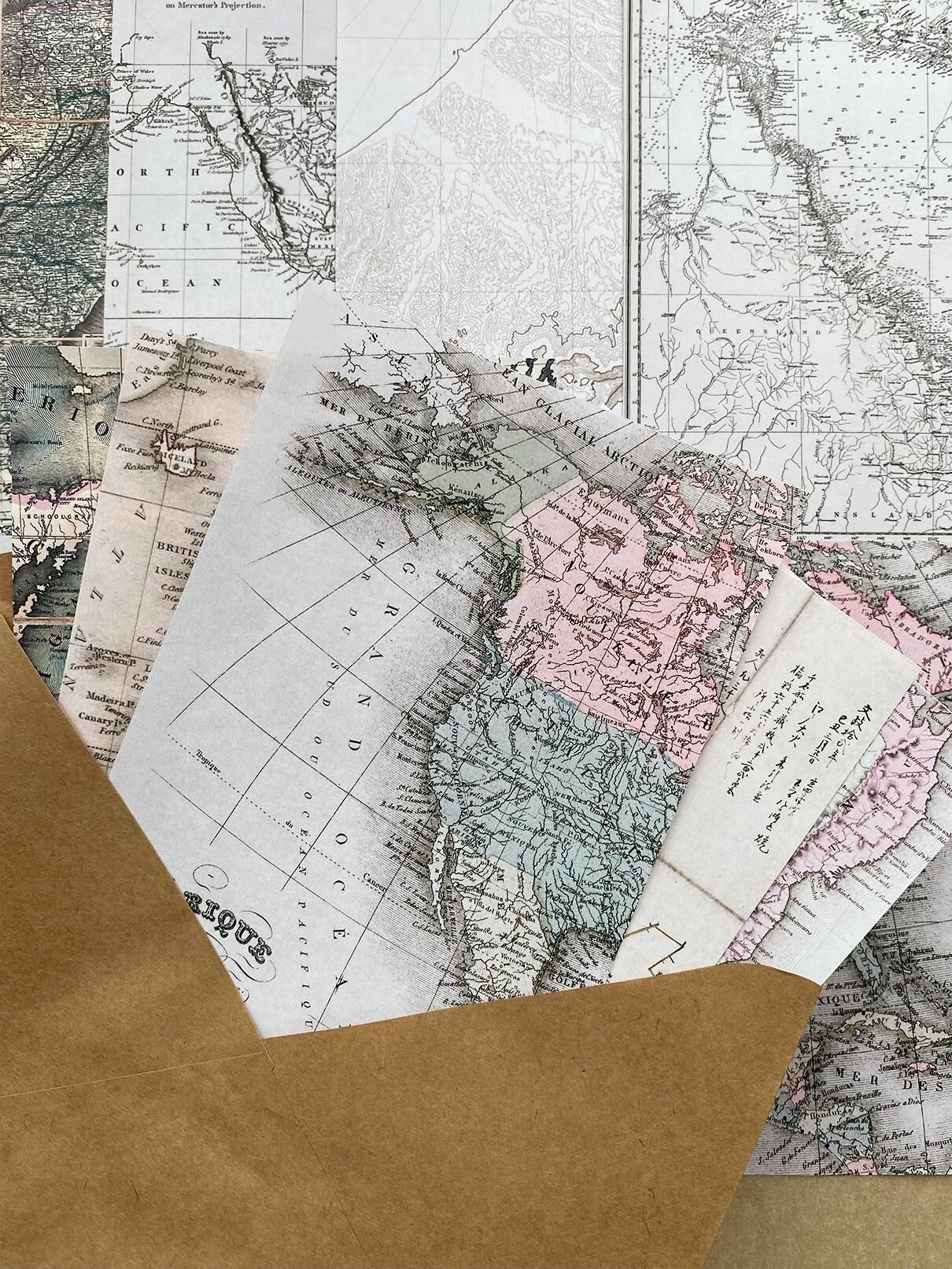 Набор бумаги для рукоделия, творчества и скрапбукинга - старинные карты (13 х 18 см) 12 листов информация:
