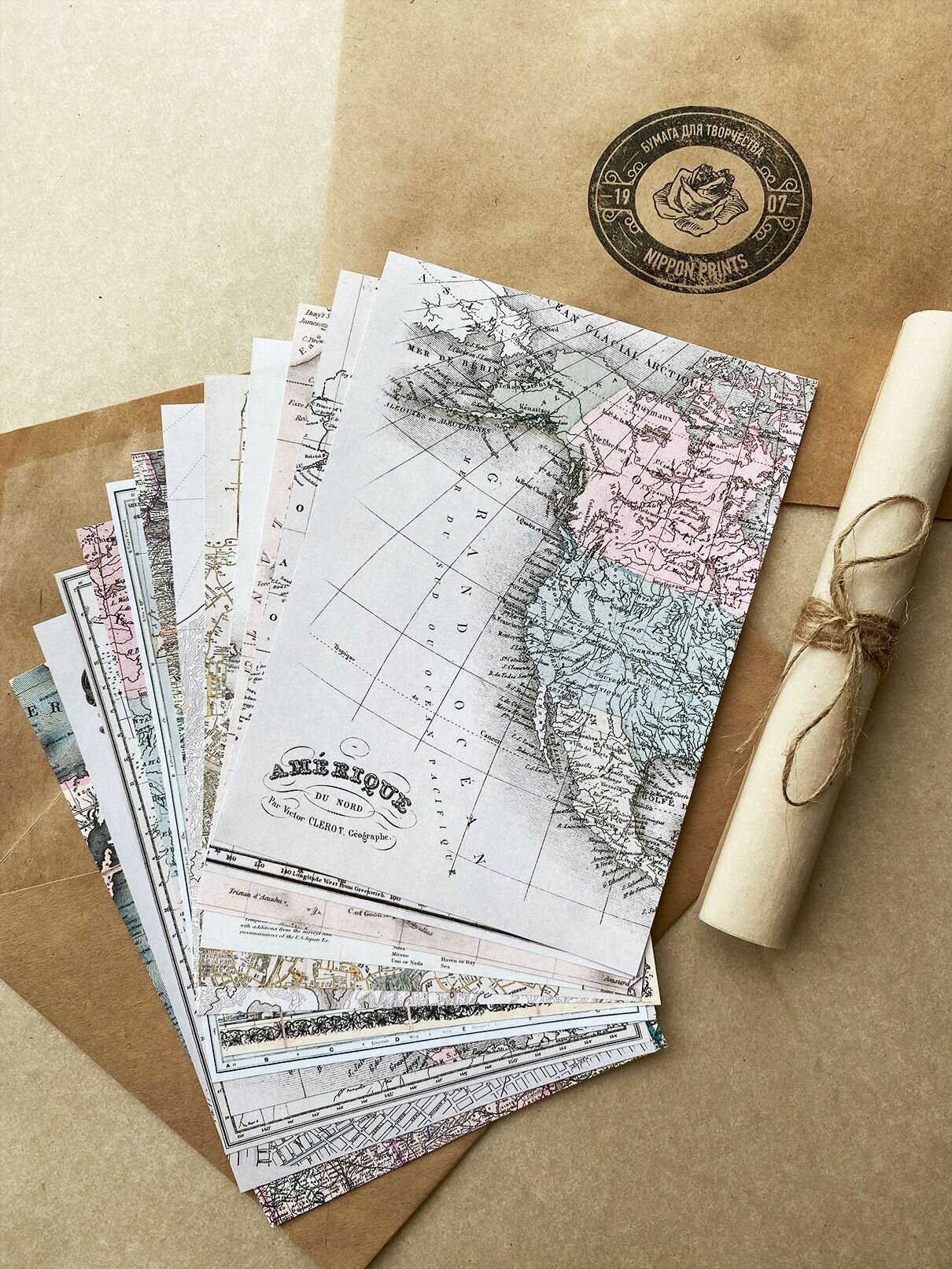 10 цен на Набор бумаги для рукоделия, творчества и скрапбукинга - старинные карты (13 х 18 см) 12 листов