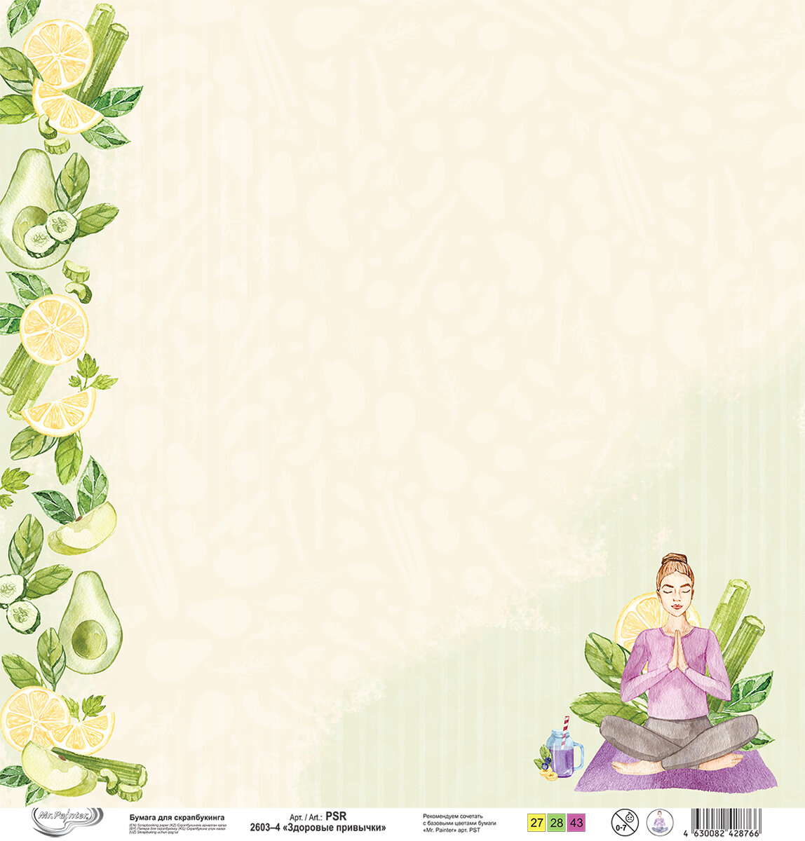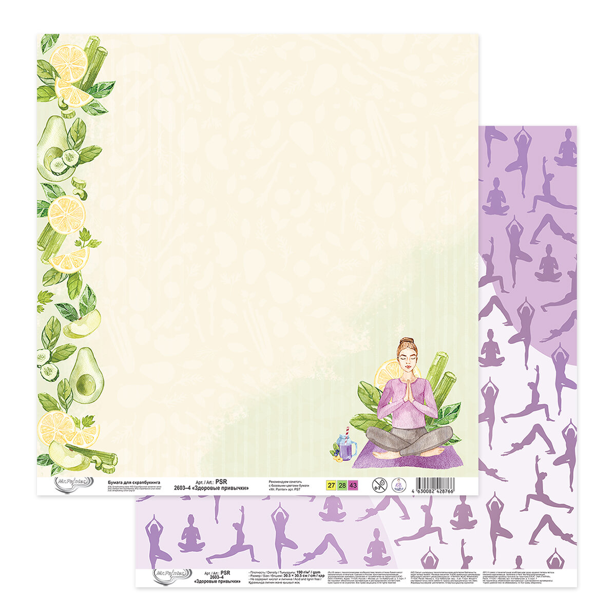 Бумага для скрапбукинга "Mr.Painter" PSR 2603 "Здоровые привычки" 190 г/кв. м 30.5 x 30.5 см 4 информация: