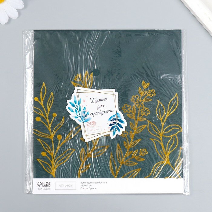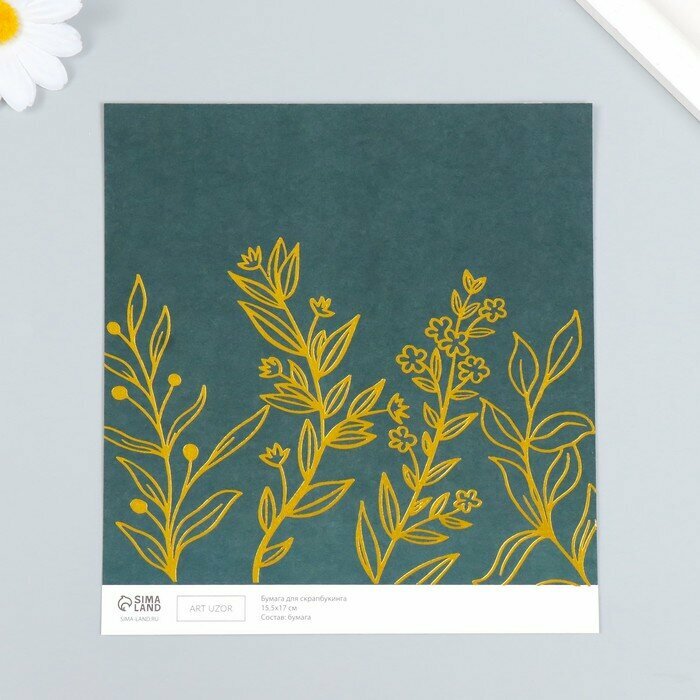 10 цен на Бумага для скрапбукинга золото "Растения" плотность 180 гр 15,5х17 см, 20 штук