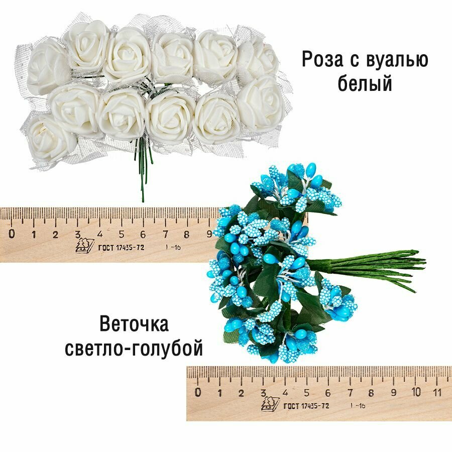 Набор цветов для скрапбукинга "Лазурная мечта", белый, голубой , 36 шт. информация: