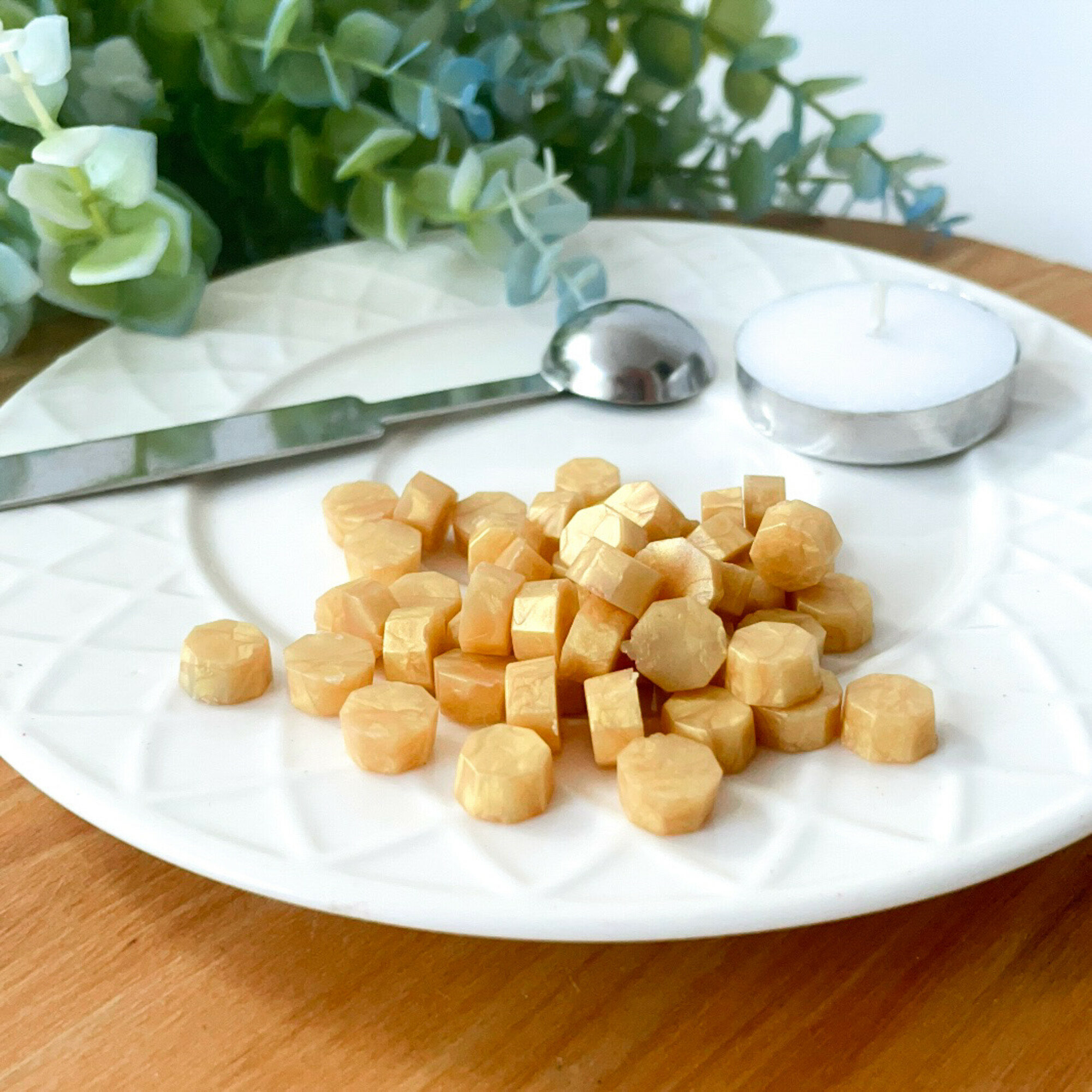 Сургуч в гранулах золотистого цвета с ложкой для плавления и свечой, набор: ложечка, сургуч, свеча информация: