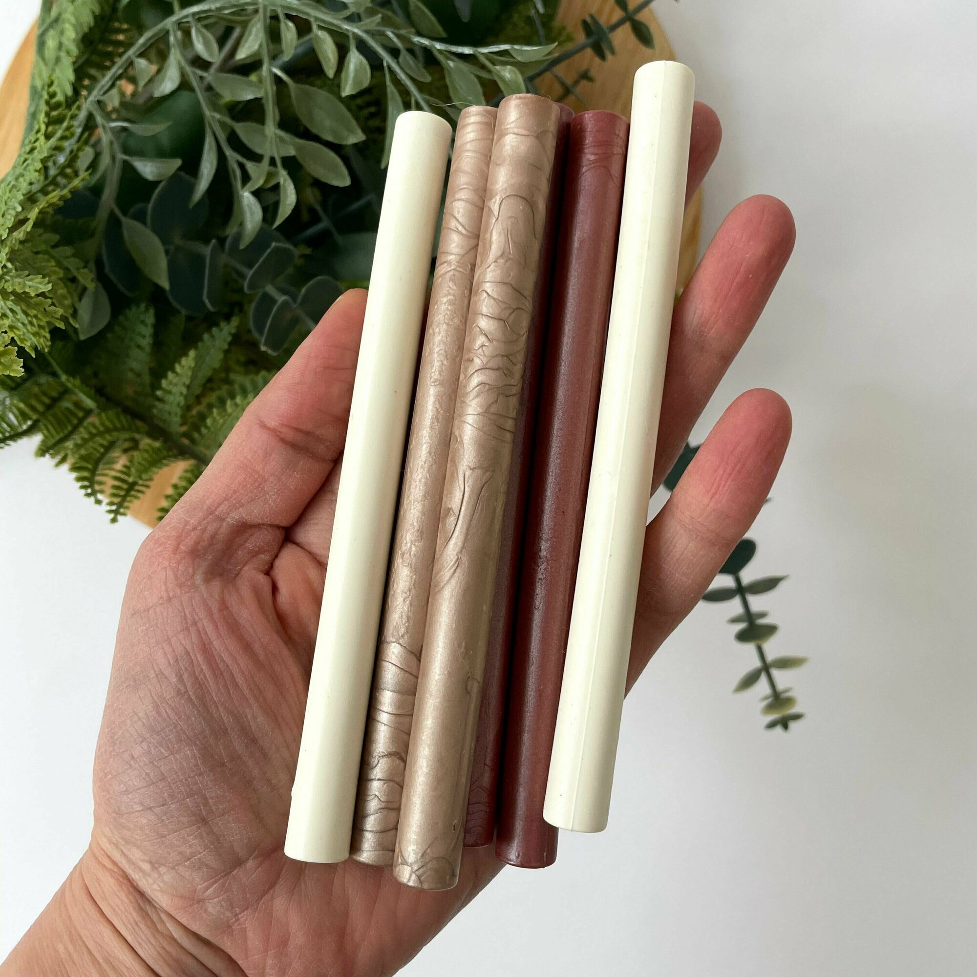 Сургуч для печати, набор 6 стержней: матовый молочный, перламутровый бежевый, пепельный бордовый информация:
