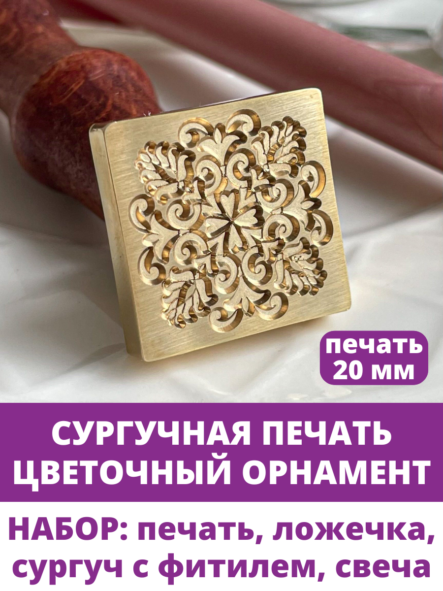 Отзывы на Сургучная печать для декорирования, набор: печать, ложечка, сургуч, свеча. Дизайн Цветочный орнамент.