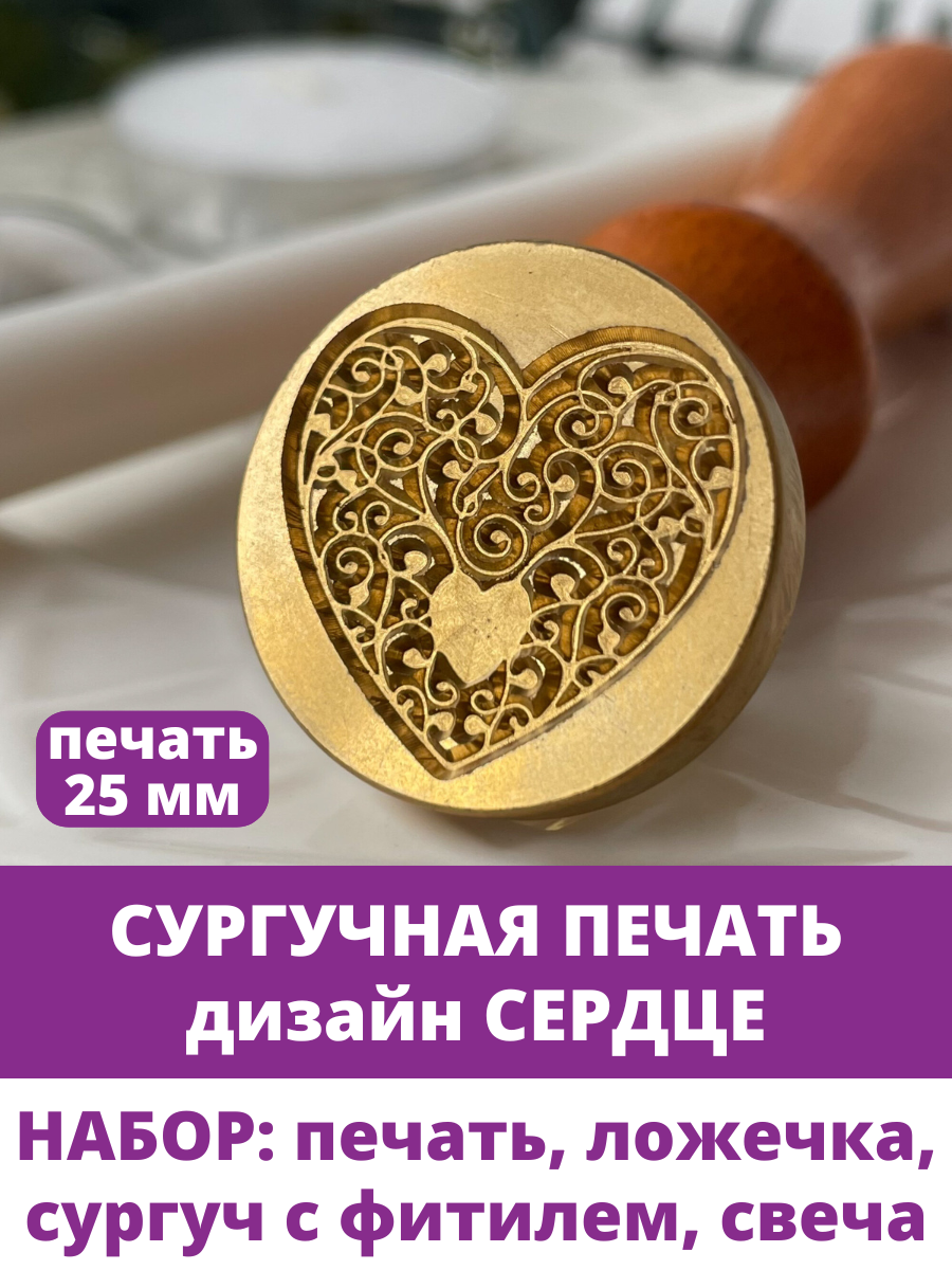 Отзывы на Сургучная печать для декорирования, набор: печать, ложечка, сургуч, свеча. Дизайн Сердце.