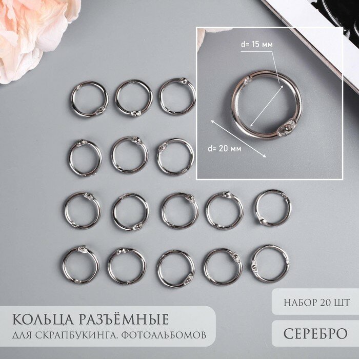 10 цен на Кольца для творчества (фотоальбомов) "Серебро" внутр. d= 1,5 см внешн. d=2 см н-р 20 шт
