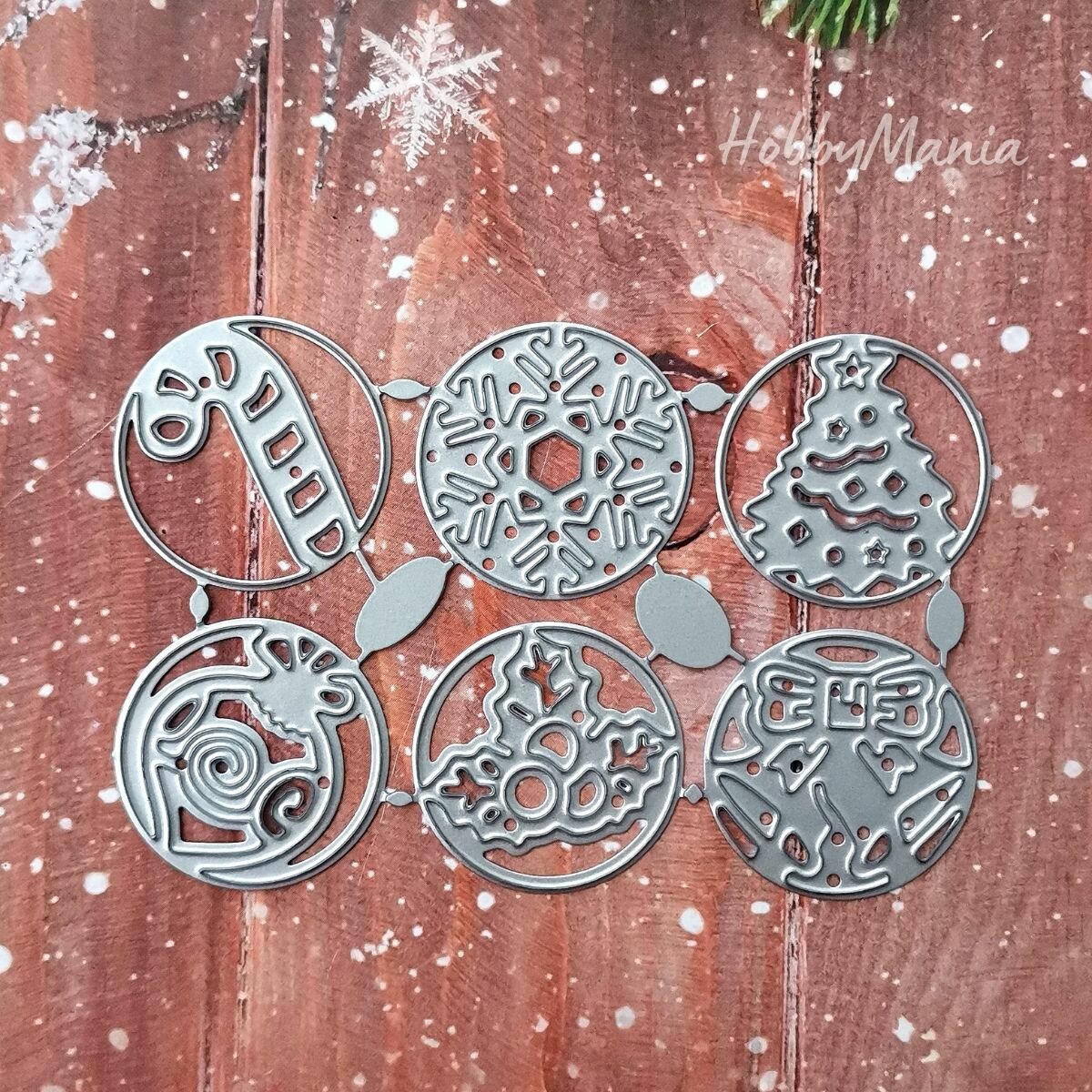 Нож для вырубки и тиснения "Елочные шары ажурные" 15,5*10,4 см, для машинки для скрапбукинга, вырубки и рукодеоия 515 ₽