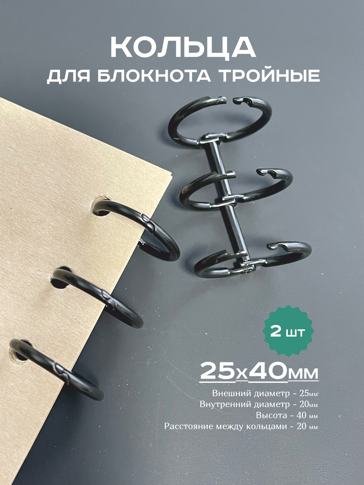 10 цен на Кольца для блокнота, механизм 25х40 мм тройной, кольца металлические черные 2шт.