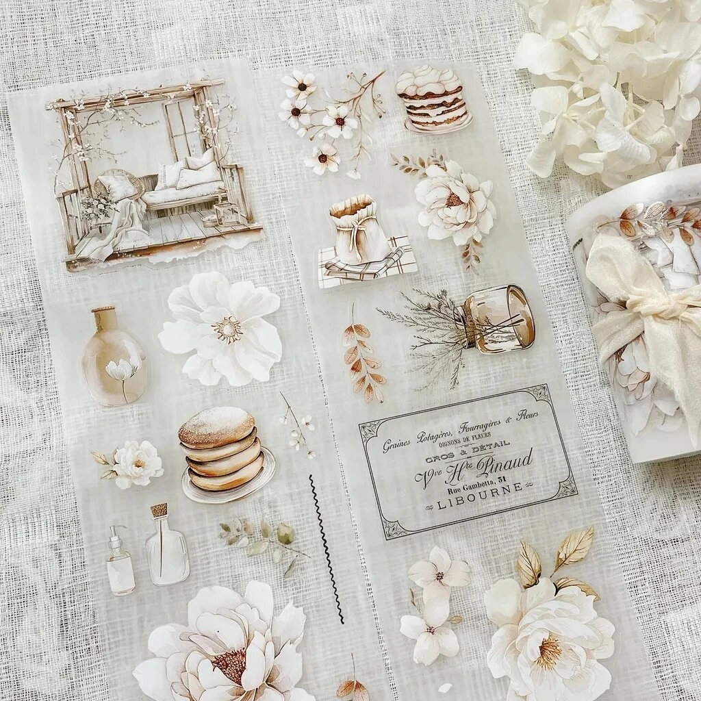 10 цен на Wollme матовая ПЭТ-лента Vintage White Blooms 6,5х100 см, Белый