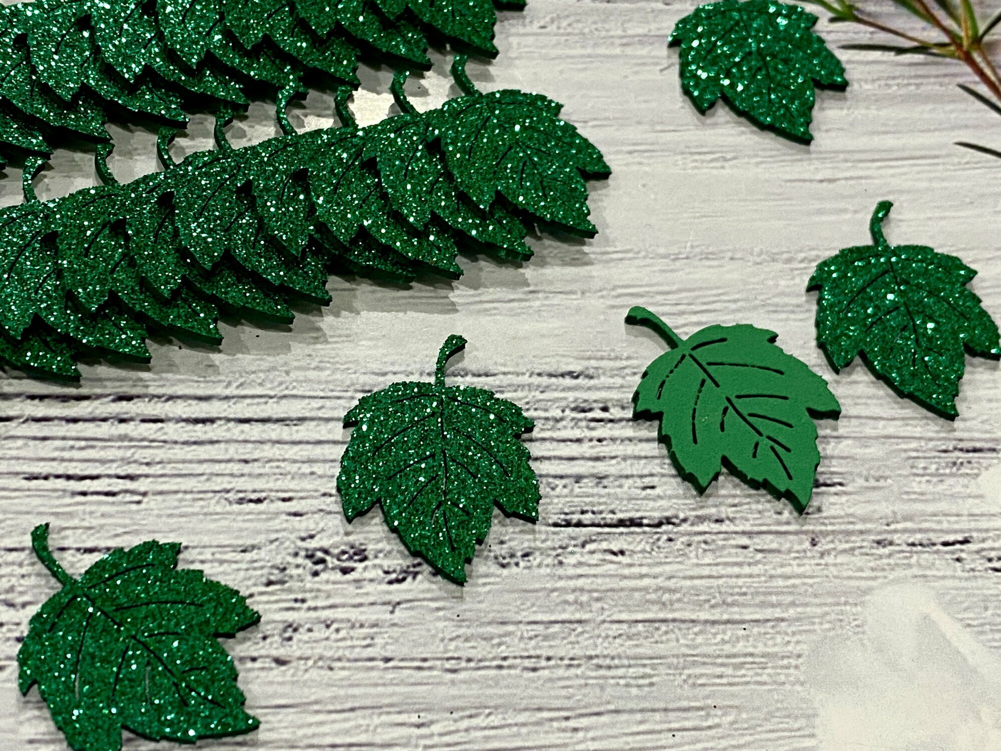 Вырубка зеленые листья 3см из глитерного фоамирана набор 50шт информация: