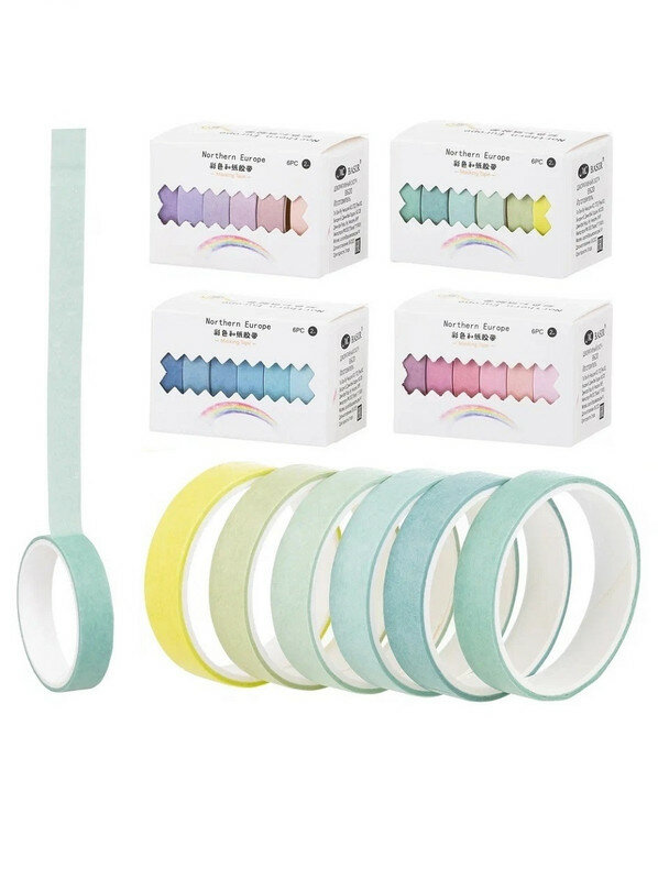 10 цен на Набор Клейкая лента декоративная цветной Градиент бумажная 6 лент зеленая