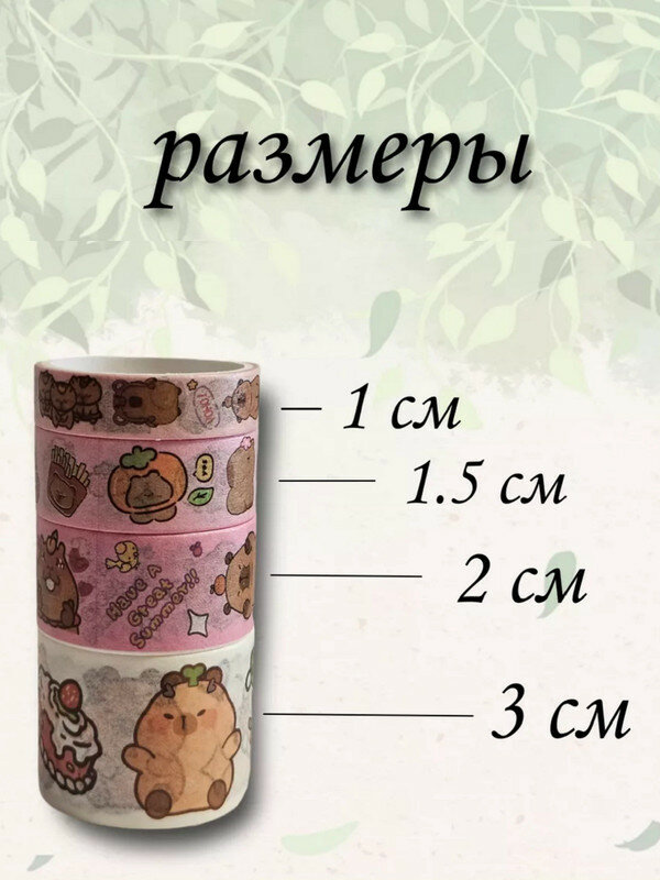 Набор Клейкая лента декоративная капибара бумажная 4 ленты разного размера розовый 312 ₽