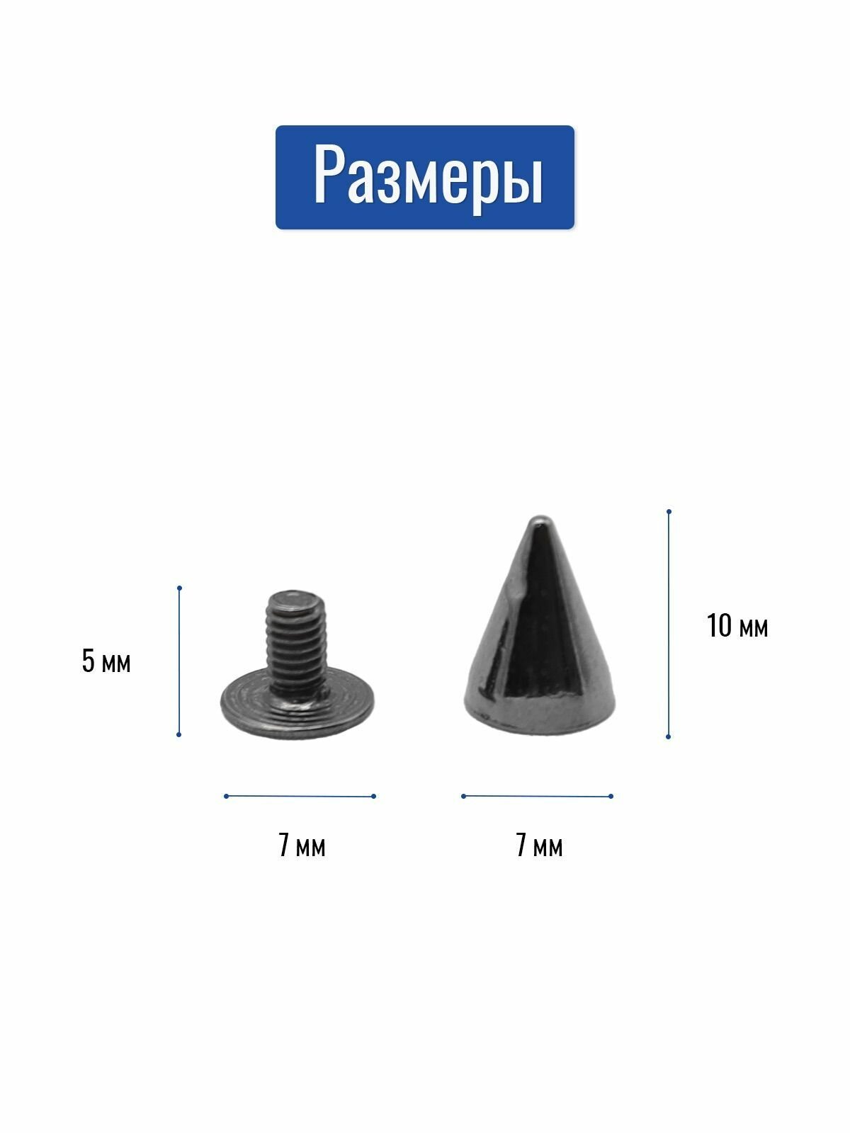 Шипы декоративные LeatherWay, винтовые, сталь, винтовые, 7x10мм, 12 шт, чёрные информация: