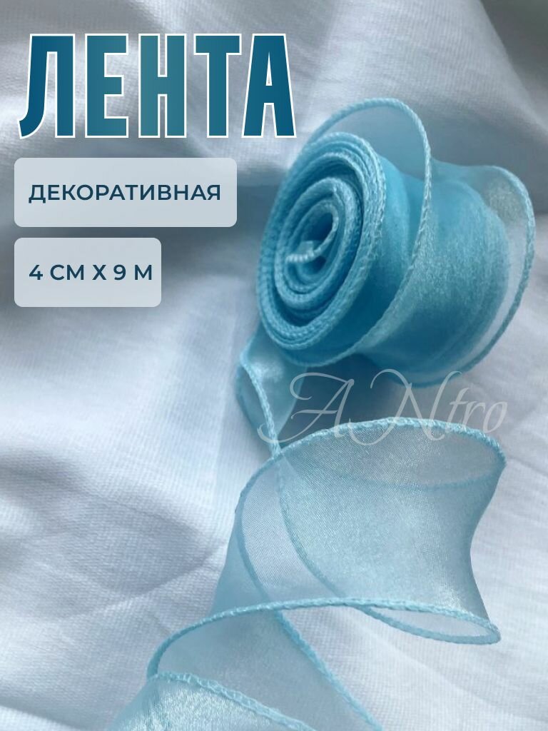 Лента декоративная "Волнистый край" 4 см* 9 м, органза 100%, голубой, 9 м информация: