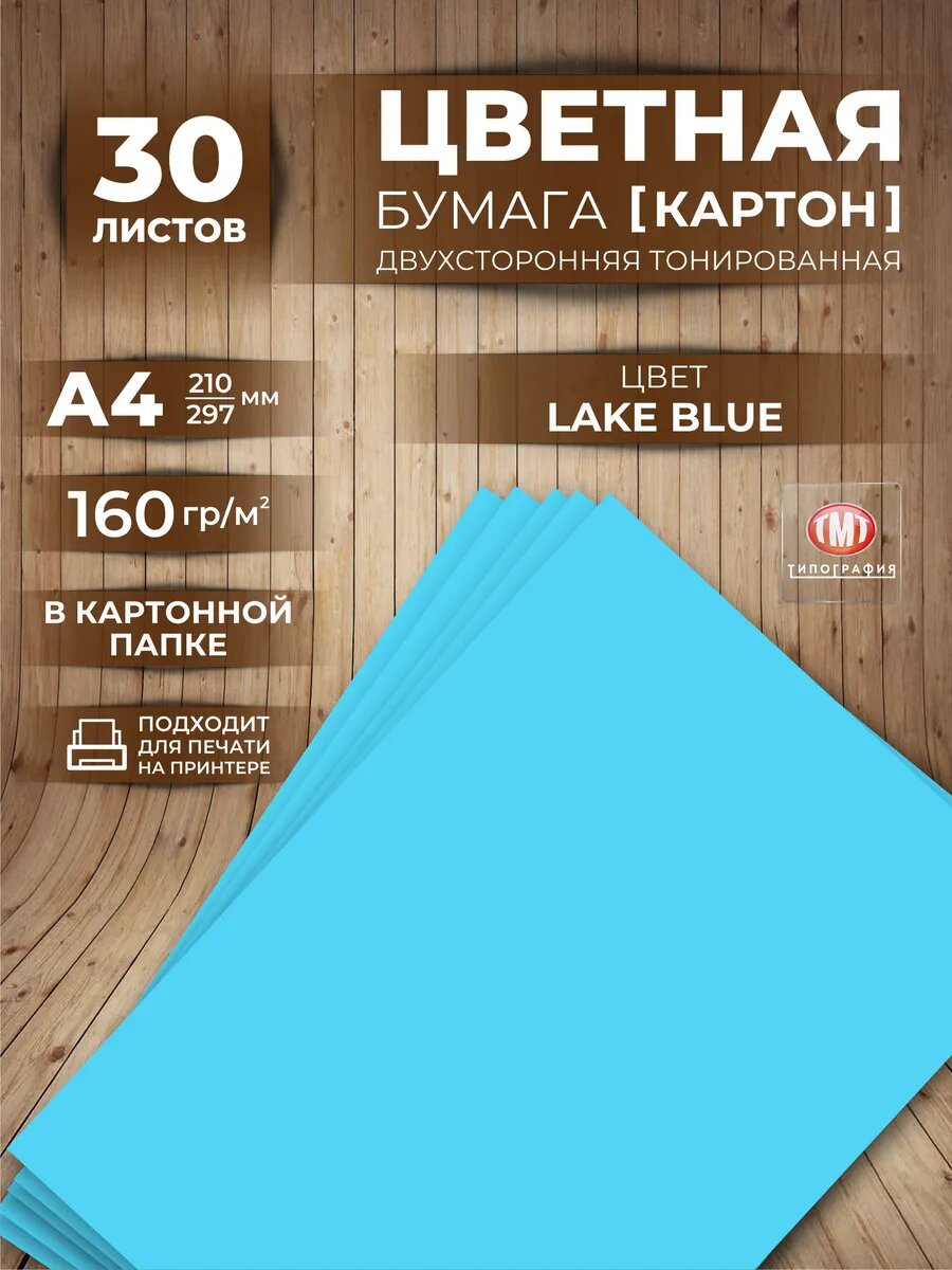 10 цен на Бумага цветная плотная (картон) для творчества от бренда Типография ТМТ, формат А4, 30 листов