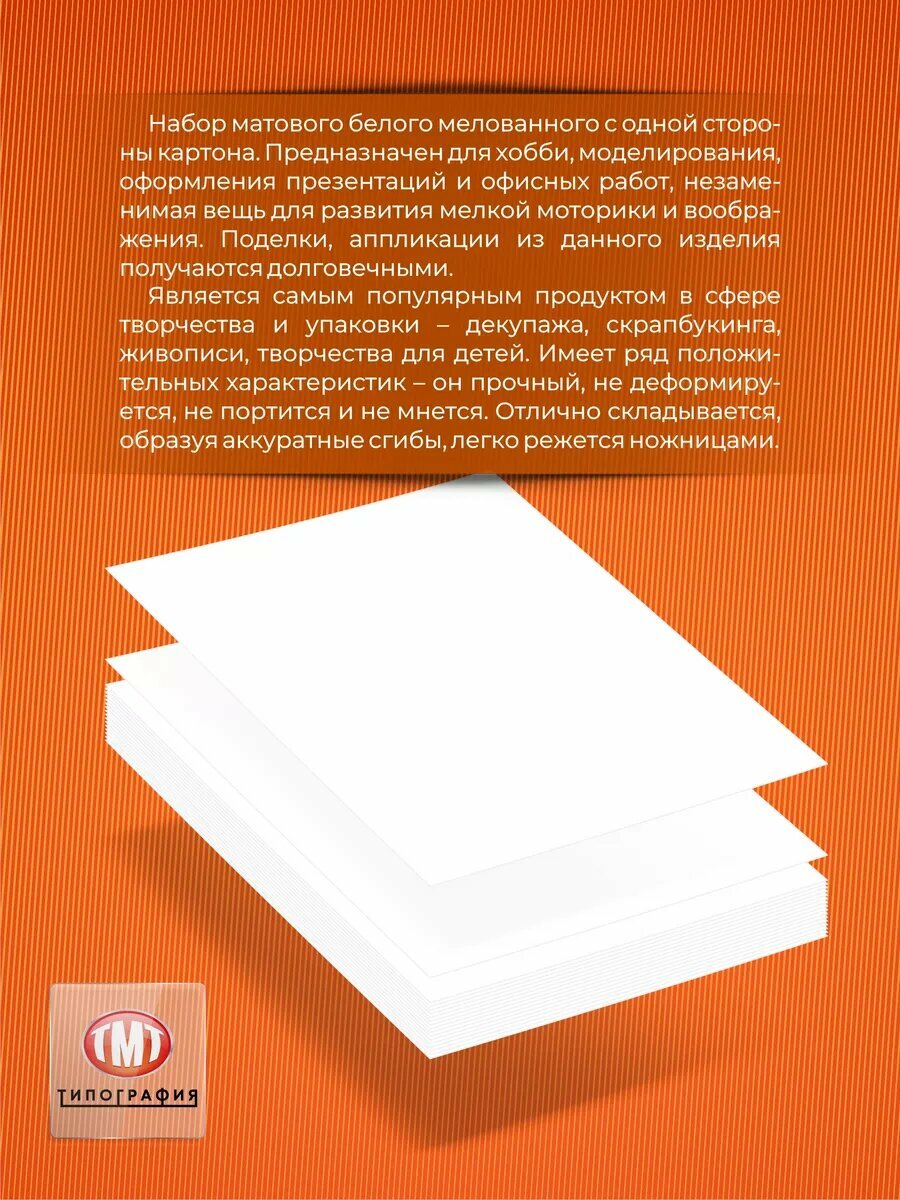 Белый картон для школы от бренда Типография "ТМТ" набор из 20 листов, формат А3, матовый информация: