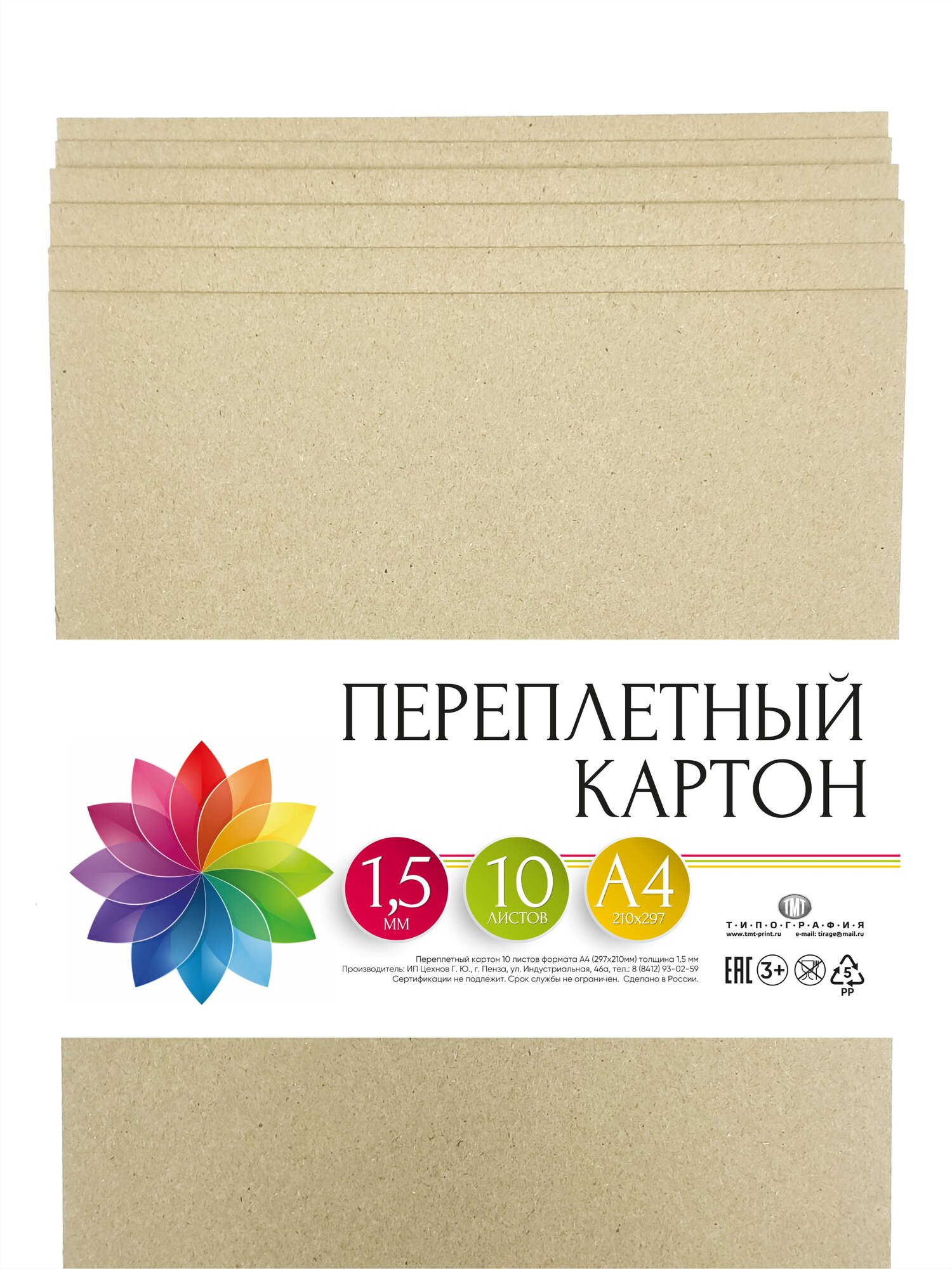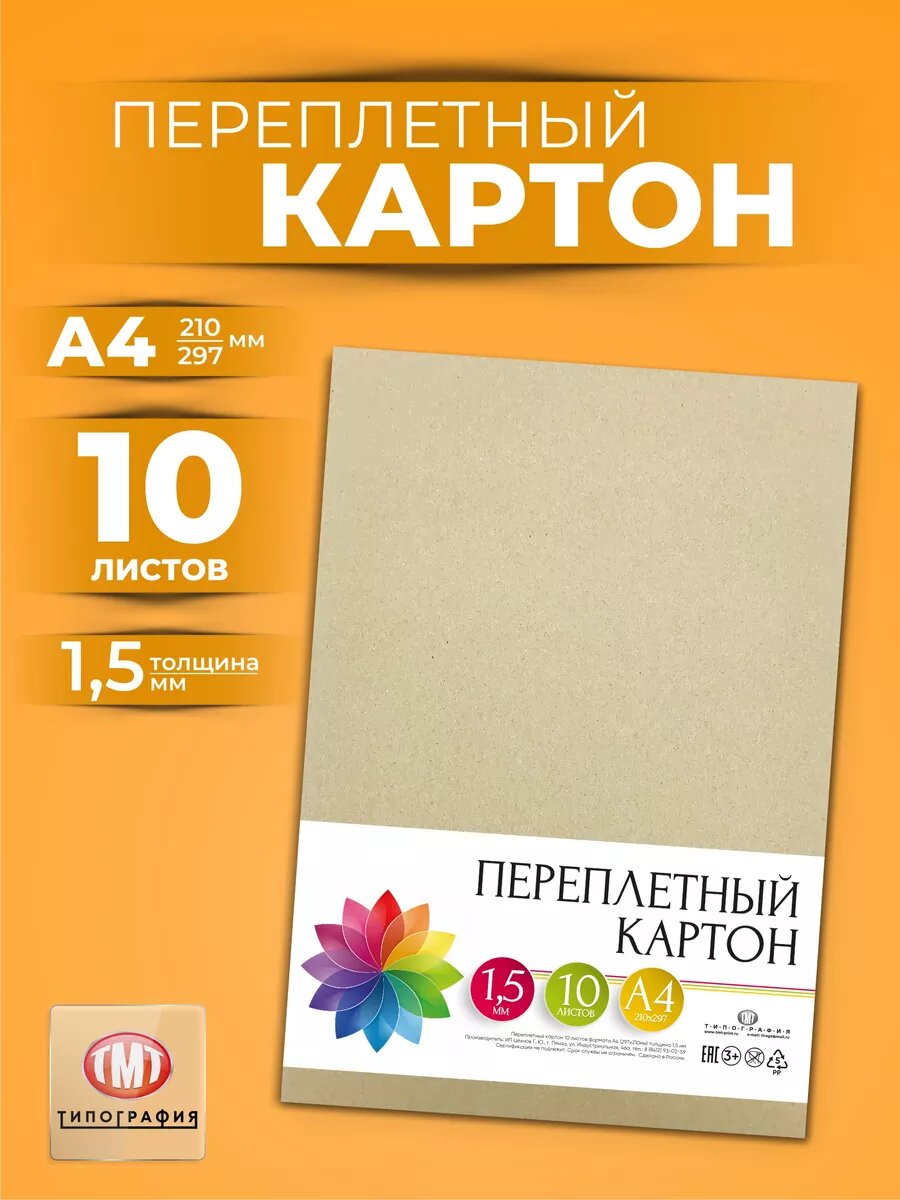 Переплетный картон "Типография ТМТ" 10 листов формат А4 толщина 1.5 мм информация: