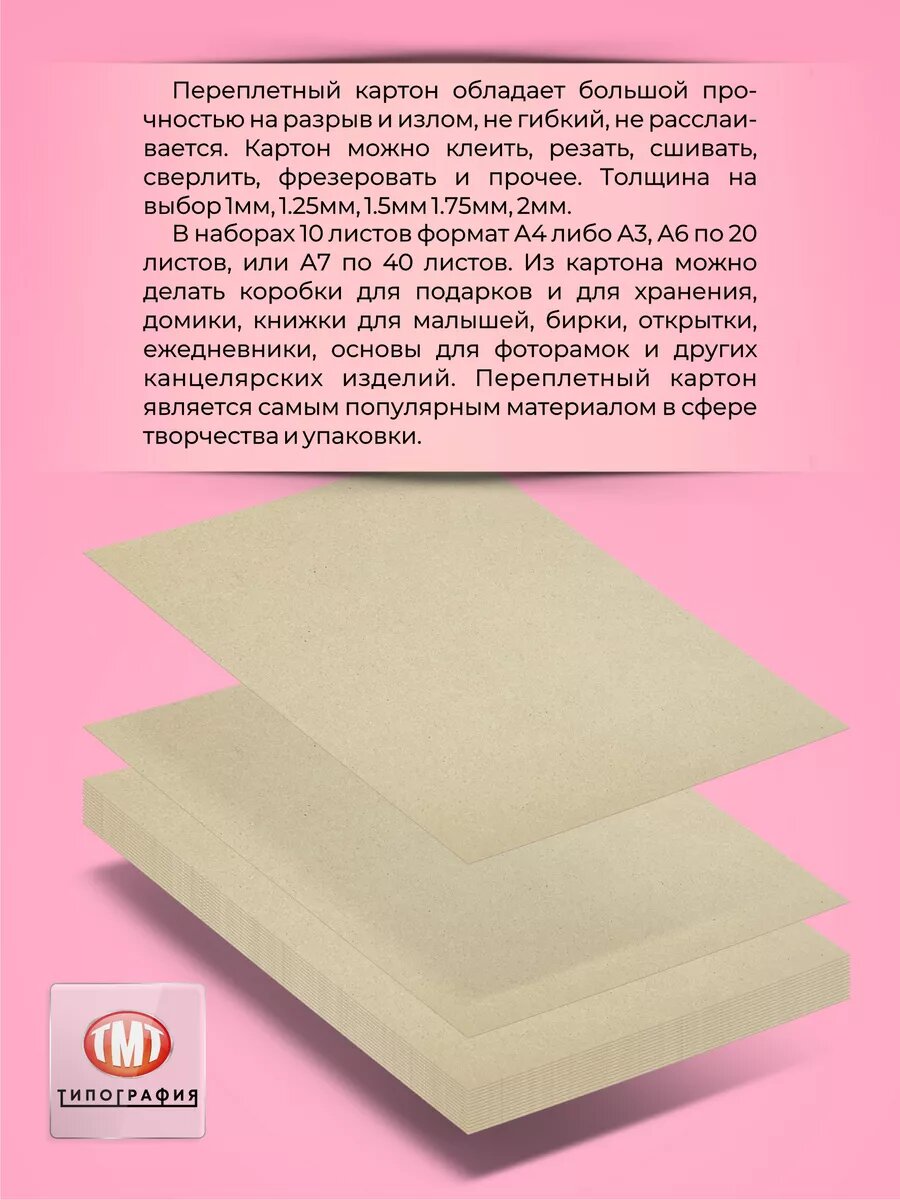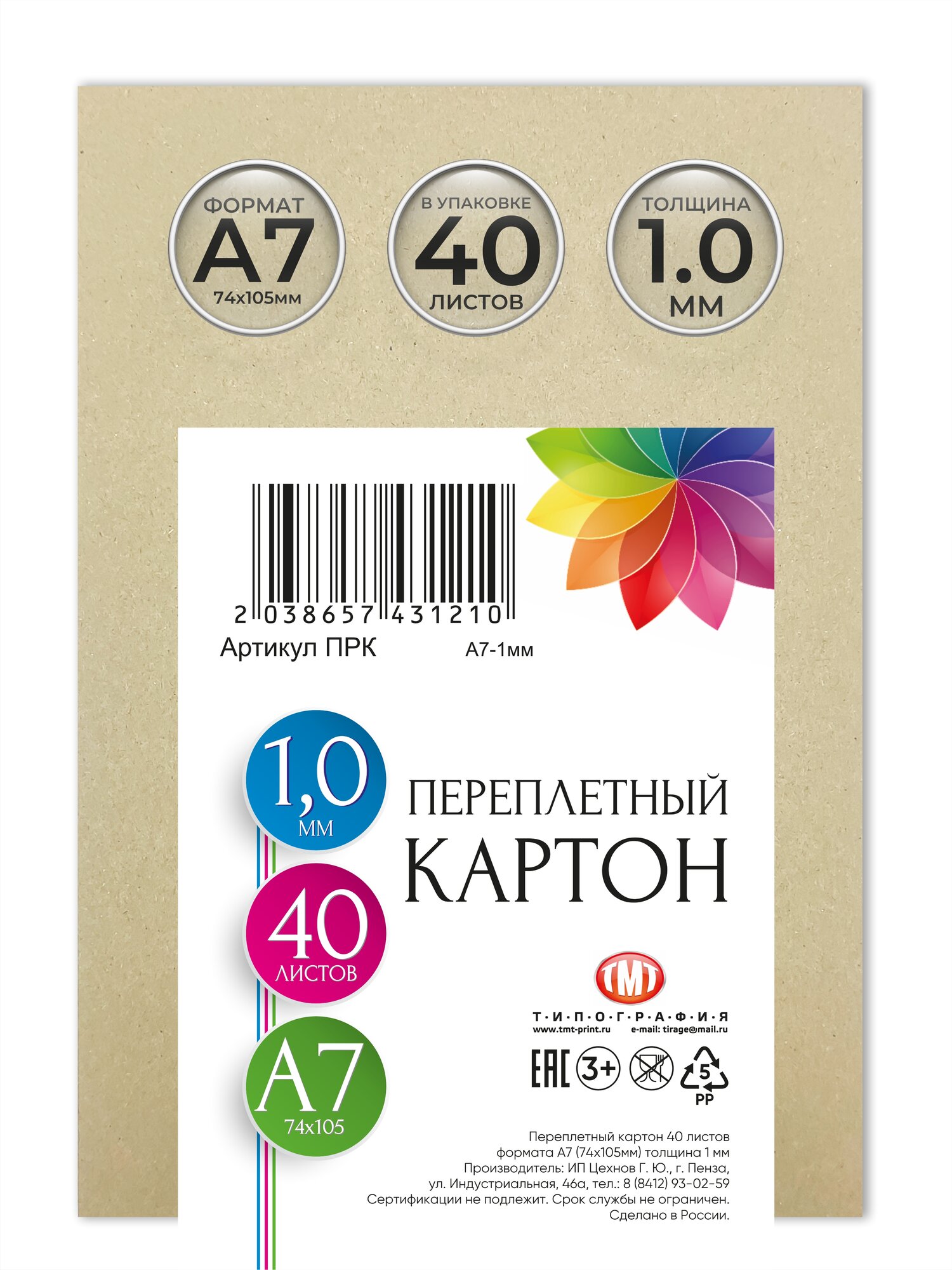 Переплетный картон "Типография ТМТ" формат А7 40 листов толщина 1 мм информация: