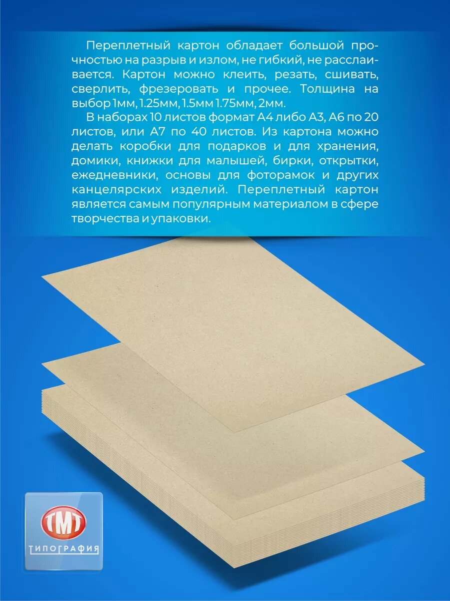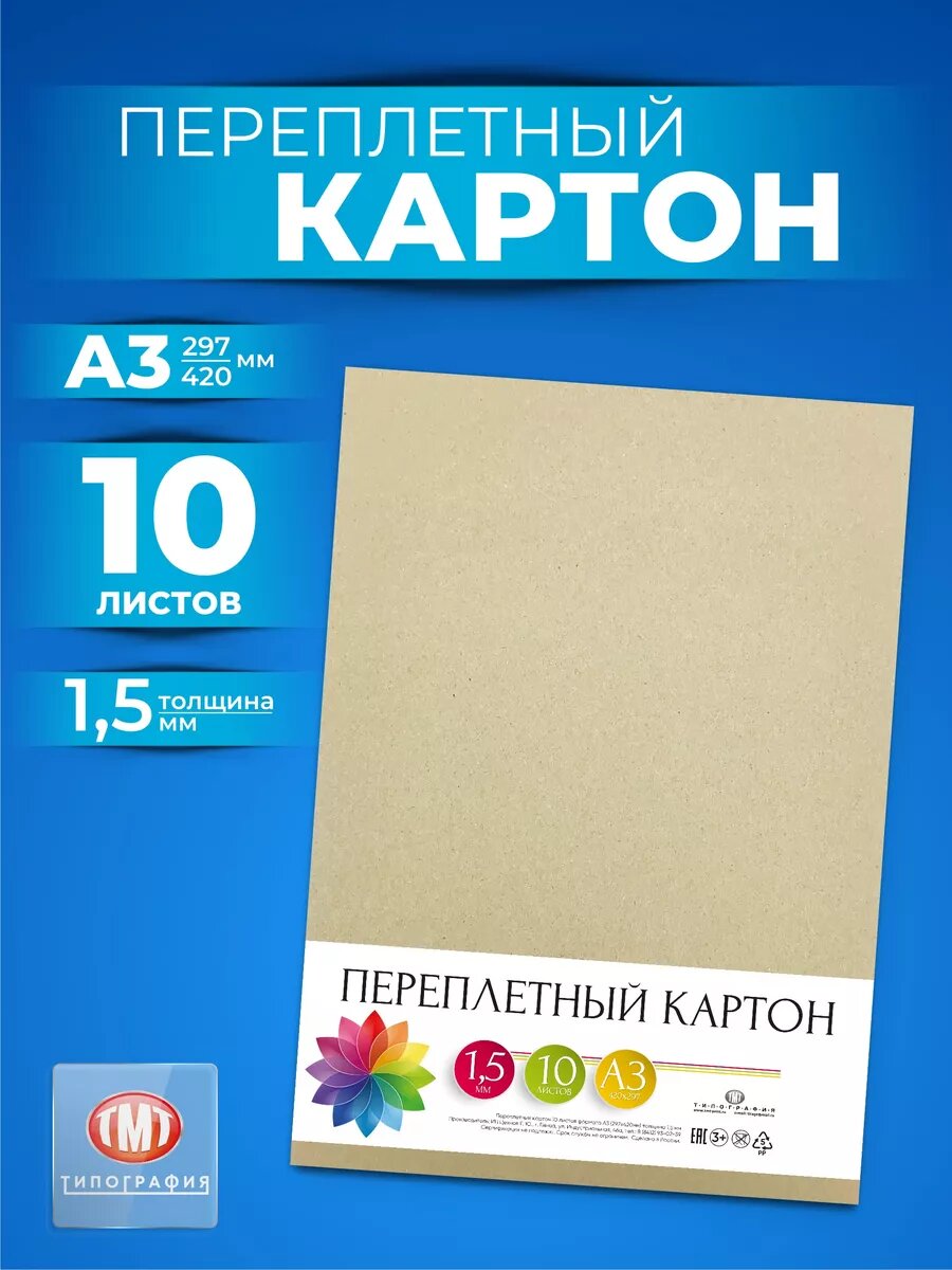 Переплетный картон "Типография ТМТ" 10 листов формат А3 толщина 1.5 мм информация:
