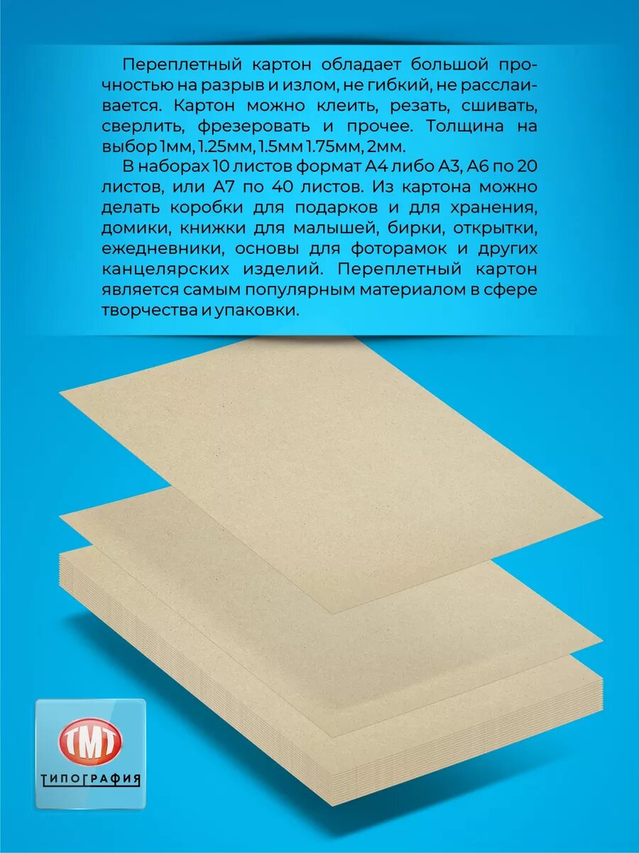 Переплетный картон от бренда "Типография ТМТ" 10 листов формат А3 толщина 1.25 мм информация: