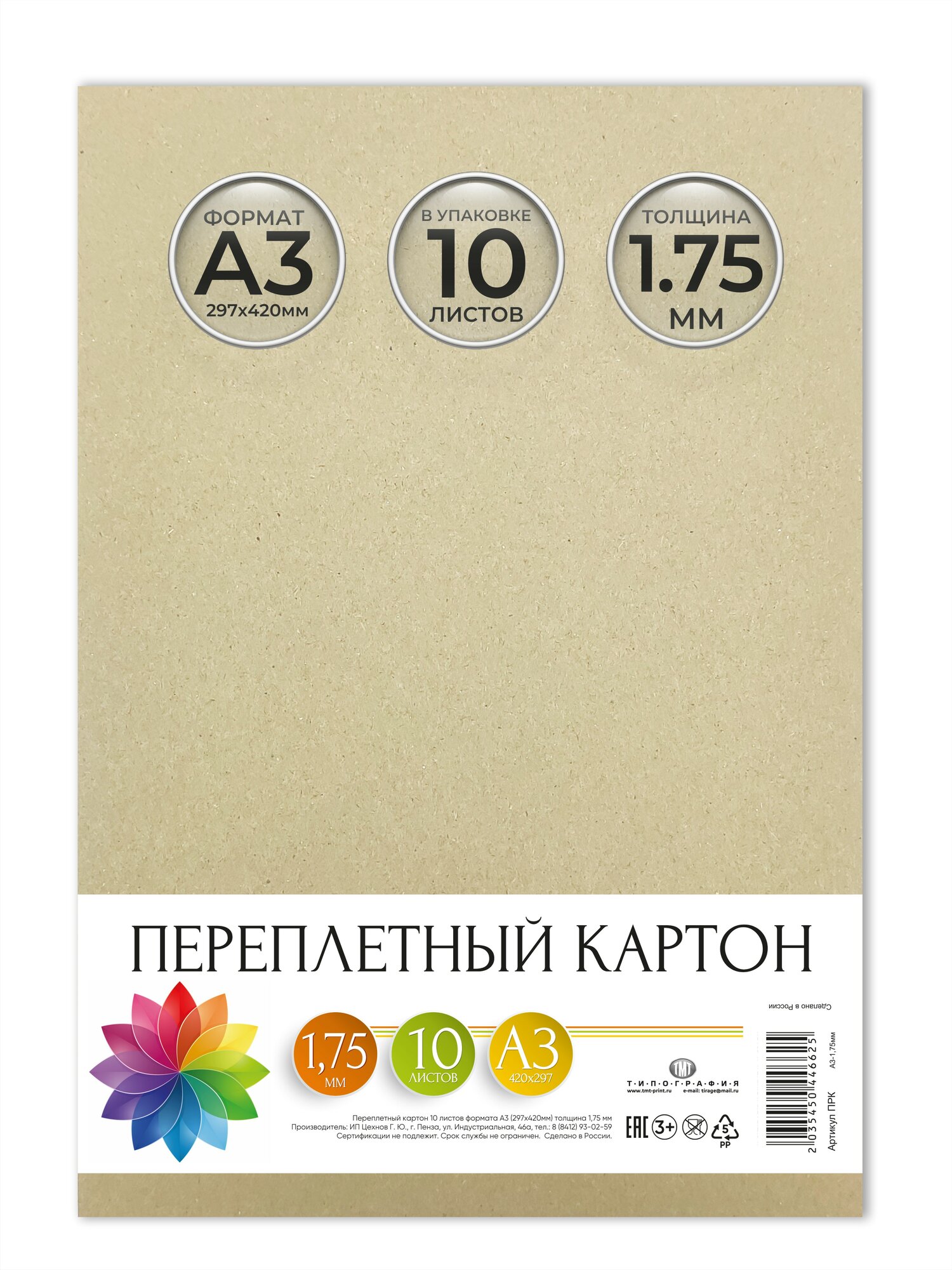 Переплетный картон "Типография ТМТ" 10 листов формат А3 толщина1.75 мм информация: