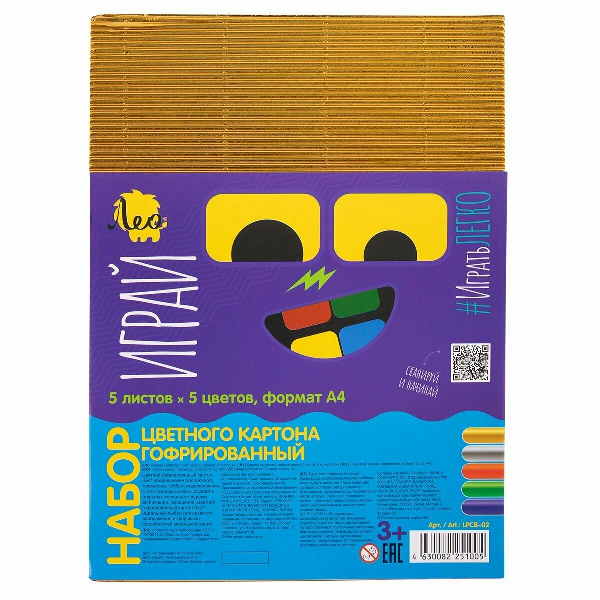 10 цен на Картон цветной гофрированный, цвета металлик Лео "Играй" LPCB-02, A4, 21х29.7 см, 5 л. 5 цв.